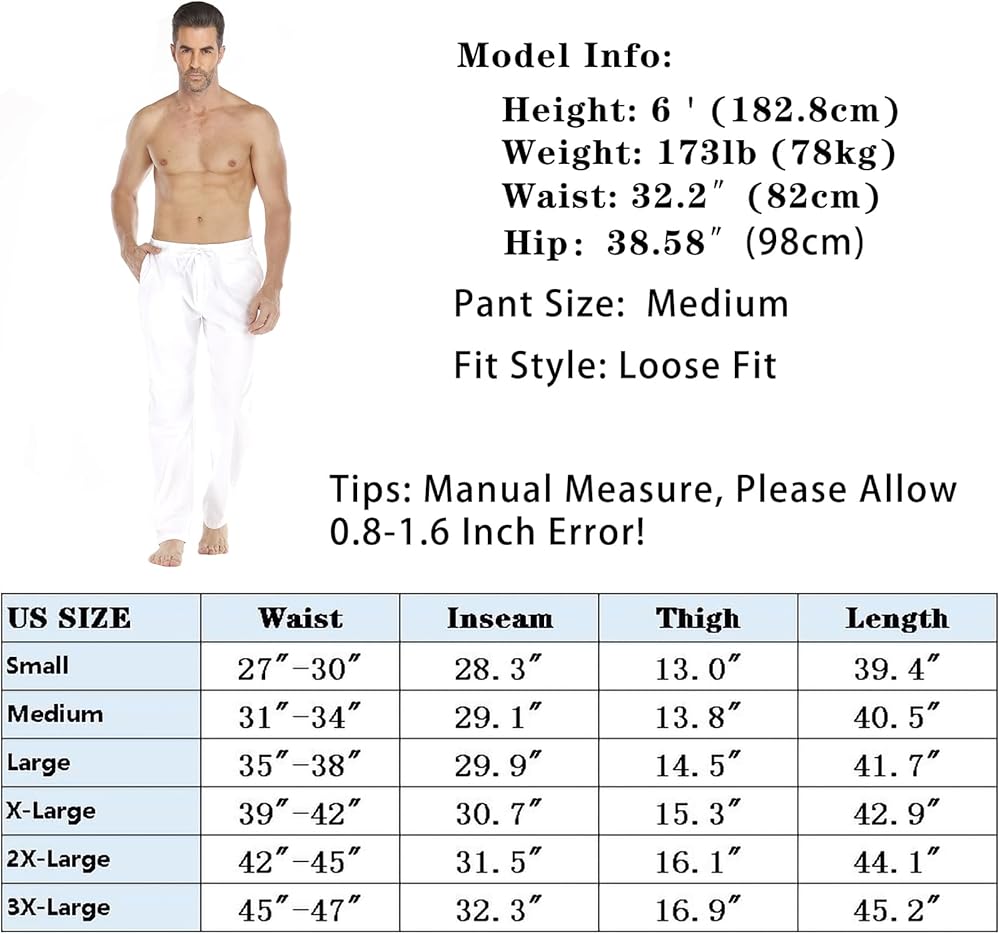 【تنبيه】تستخدم سراويل الكتان لدينا نسيجًا من مزيج قطن الكتان خفيف الوزن وجيد التهوية، وهي مناسبة للطقس الحار في الصيف أو للارتداء في الأماكن المغلقة، وليس لأيام الشتاء الباردة. وهي شفافة قليلاً، لذلك تحتاج إلى ارتداء ملابس داخلية فاتحة اللون عند اختيار اللون الأبيض أو أوف وايت اللون. شكرا.