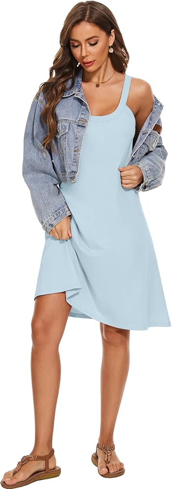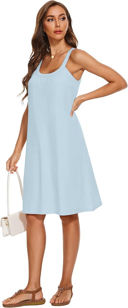 TAIPOVE ملابس نوم نسائية بدون أكمام مع حمالة صدر مدمجة من القطن برقبة رسن فساتين ناعمة ومريحة ملابس نوم لطيفة