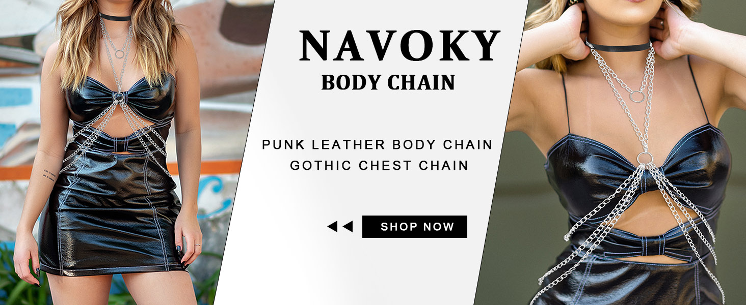 Navoky الجلود الطبقات الشرير الجسم سلسلة القوطية حلقة معدنية قلادة الصدر سلسلة متعدد الطبقات البرازيلي سلاسل الجسم اكسسوارات الهذيان الملاهي الليلية هالوين للنساء