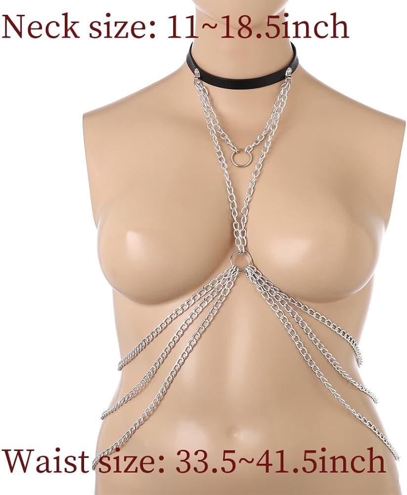 [Material]: Punk chest chain is made of black leather and alloy, perfect accessory to accentuate your figure.