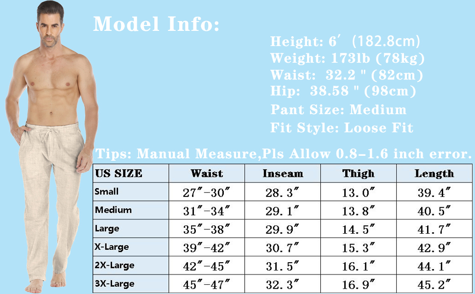 • 【تنبيه】تستخدم سراويل الكتان لدينا نسيجًا من مزيج قطن الكتان خفيف الوزن وجيد التهوية، وهي مناسبة للطقس الحار في الصيف أو للارتداء في الأماكن المغلقة، وليس لأيام الشتاء الباردة. وهي شفافة قليلاً، لذلك تحتاج إلى ارتداء ملابس داخلية فاتحة اللون عند اختيار اللون الأبيض أو أوف وايت اللون. شكرا.