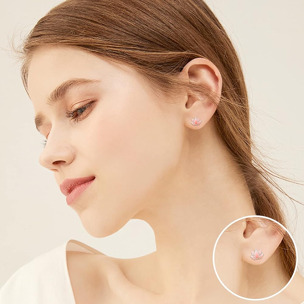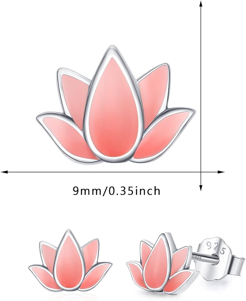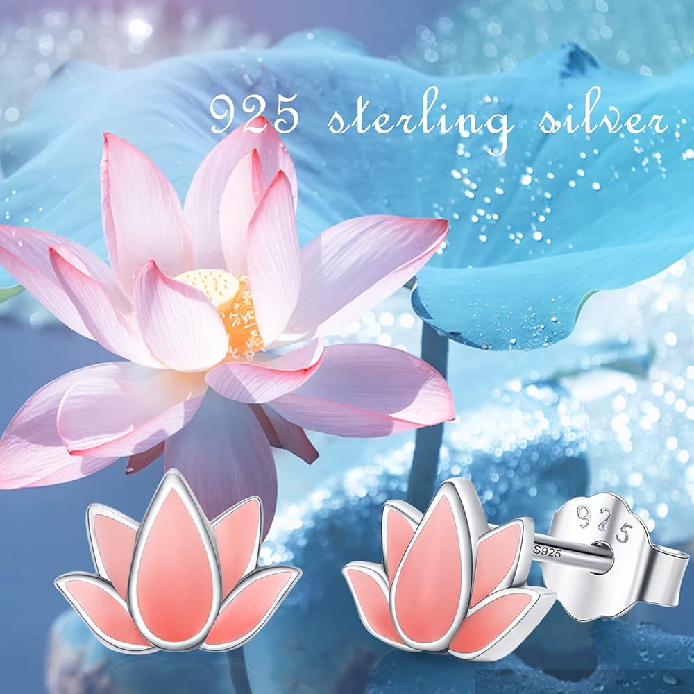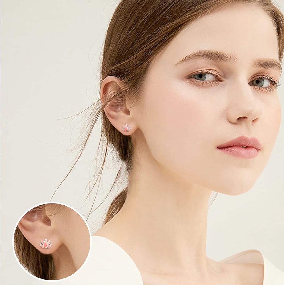 مادة مسامير اللوتس الصغيرة: مصنوعة من الفضة الإسترلينية 925 بنسبة 100%، أقراط الزهرة الوردية مناسبة لأذنيك الحساسة. فهي خالية من النيكل والرصاص والكادميوم، ولا تسبب الحساسية ولن تجعل بشرتك خضراء.