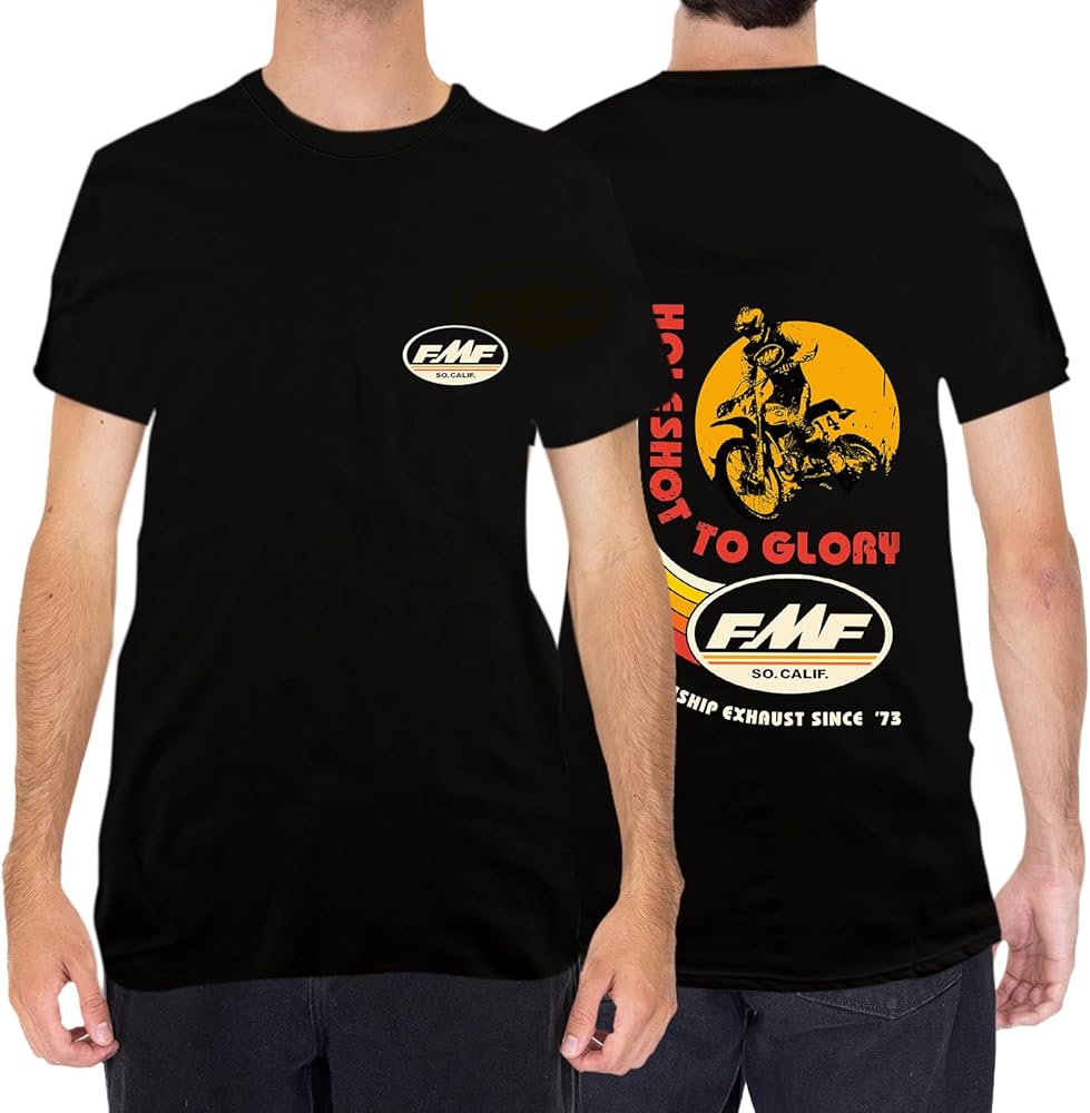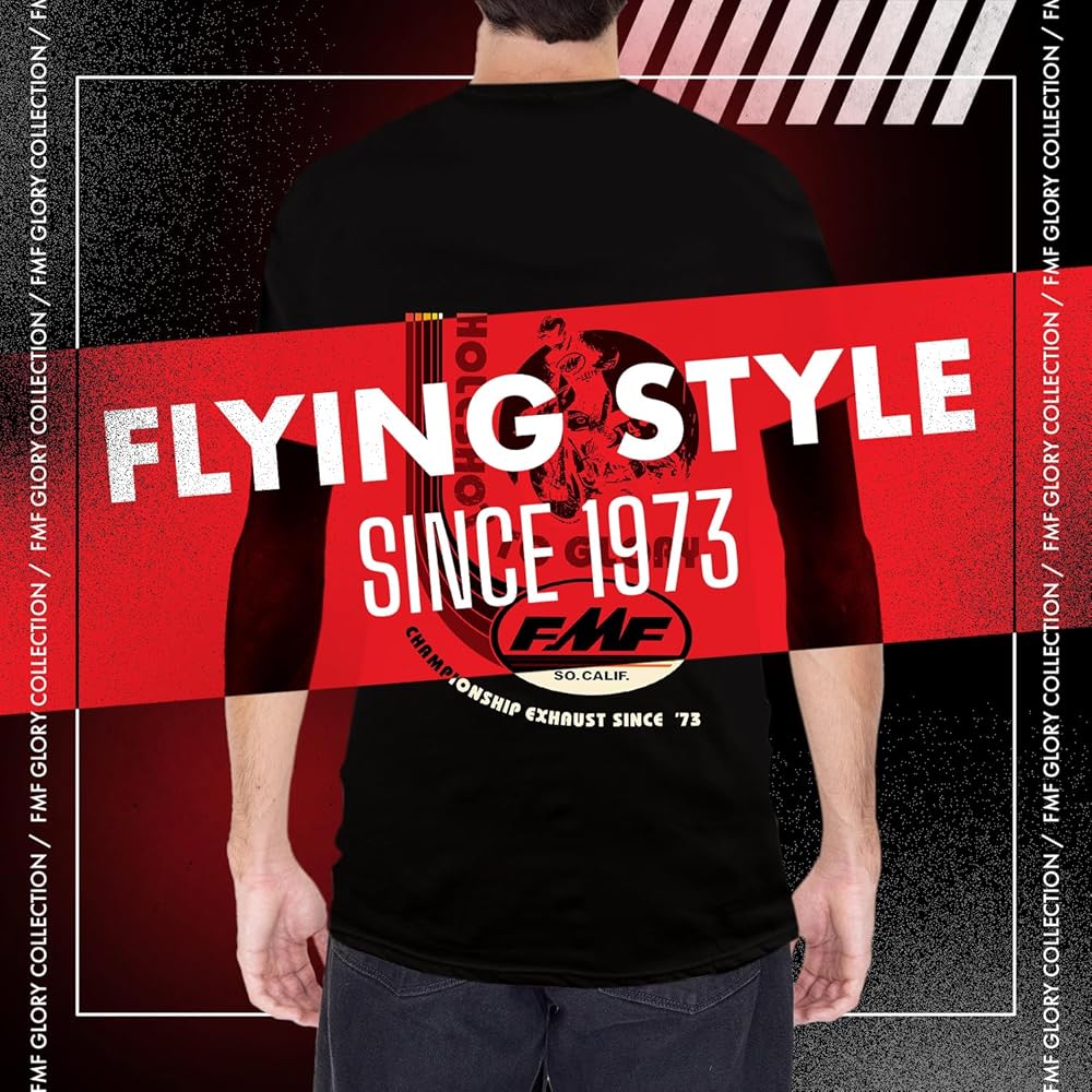 تي شيرت Glory - استمتع بإثارة الحياة في الطريق السريع مع هذا التي شيرت الرجالي الأنيق، الذي يتميز بشعار FMF وشعار "Holeshot To Glory" ورسومات راكبي الدراجات النارية. تضمن الطباعة اليدوية الناعمة على البلاستيسول تصميم رسومات FMF الرائعة لتدوم طويلاً