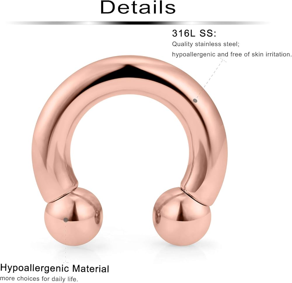 • Material: These Circular Horseshoe Barbells Are Made of 316L Stainless Surgical Steel, Solid and Durable, Hypoallergenic and Nickel Free; High Polished Surface, Very Smooth to Wear, Extremely Easy to Clean.