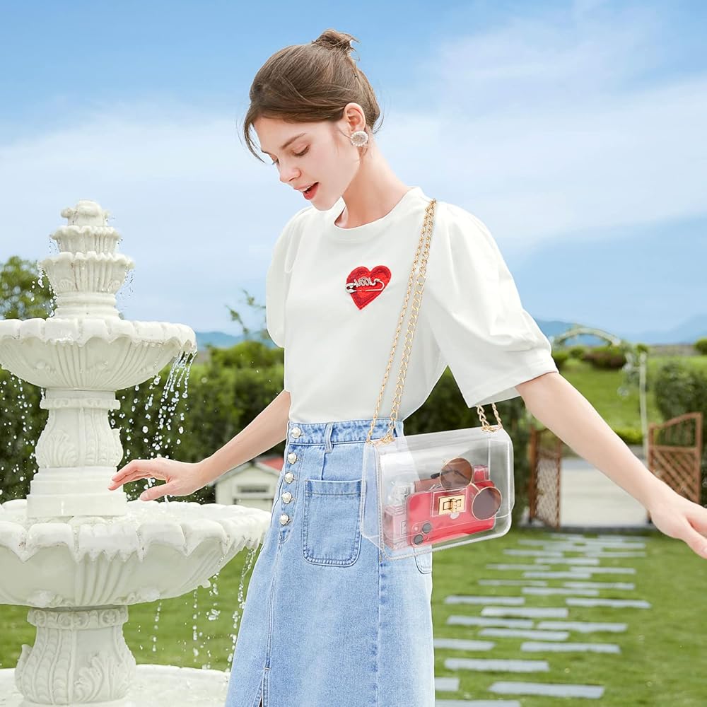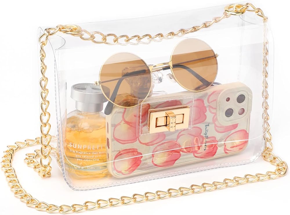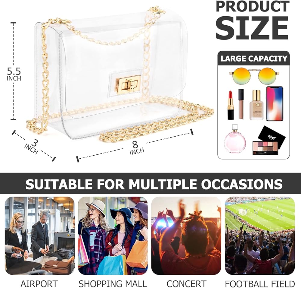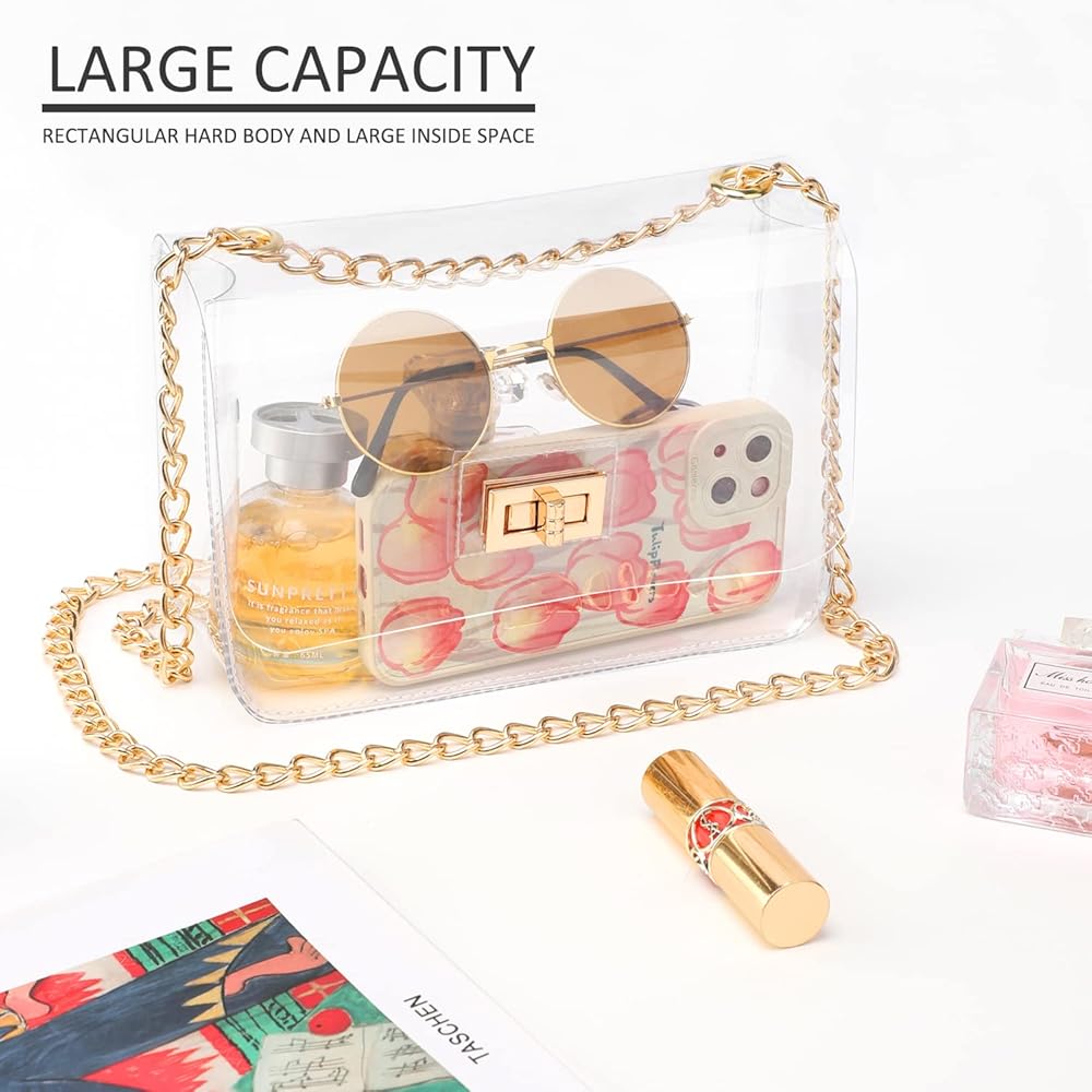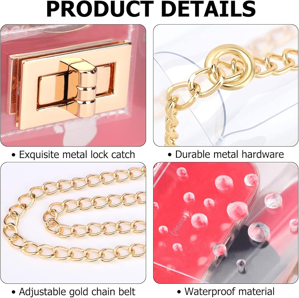 حقيبة كروس شفافة مع سلسلة قابلة للتعديل: هذه الحقيبة الشفافة تستحق المال، سلسلة الحزام لطيفة وخفيفة الوزن. المحفظة الشفافة ذات السلسلة القابلة للتعديل والفصل مناسبة لك لضبط الطول عن طريق ربط السلسلة المعدنية لتناسب جذعك. يمكن فتح تصميم الإغلاق بالإبزيم بيد واحدة لمزيد من الراحة.