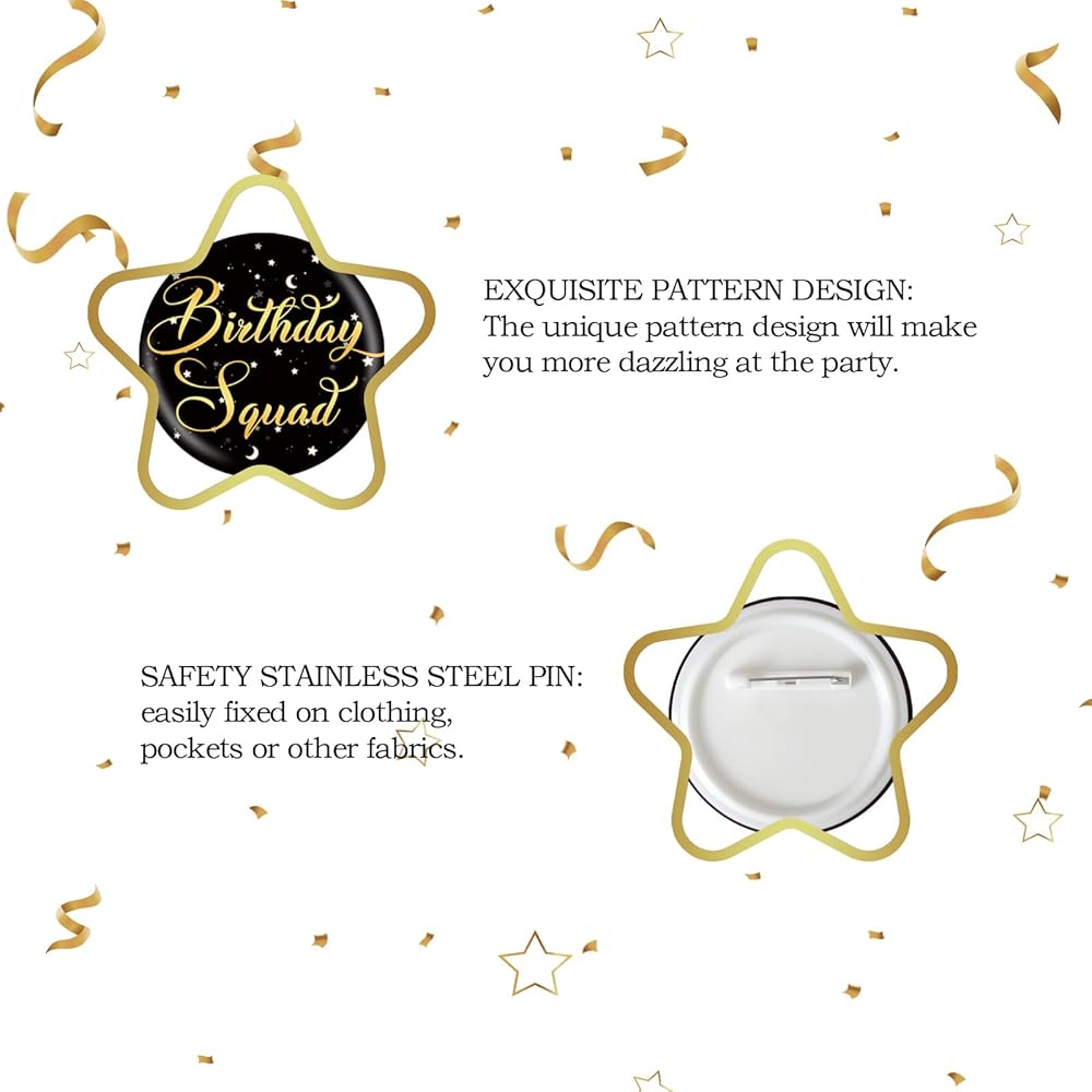 💛【Birthday Squad Button】This badge is worn on the chest as a decoration, it will highlight the birthday party and make the party look more elegant and different. We hope this product can bring you and your friends a good time.
