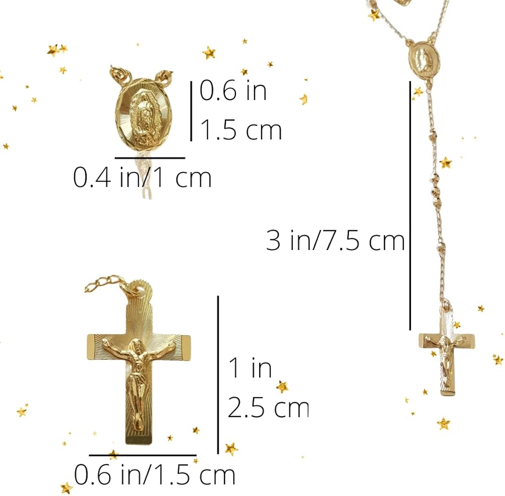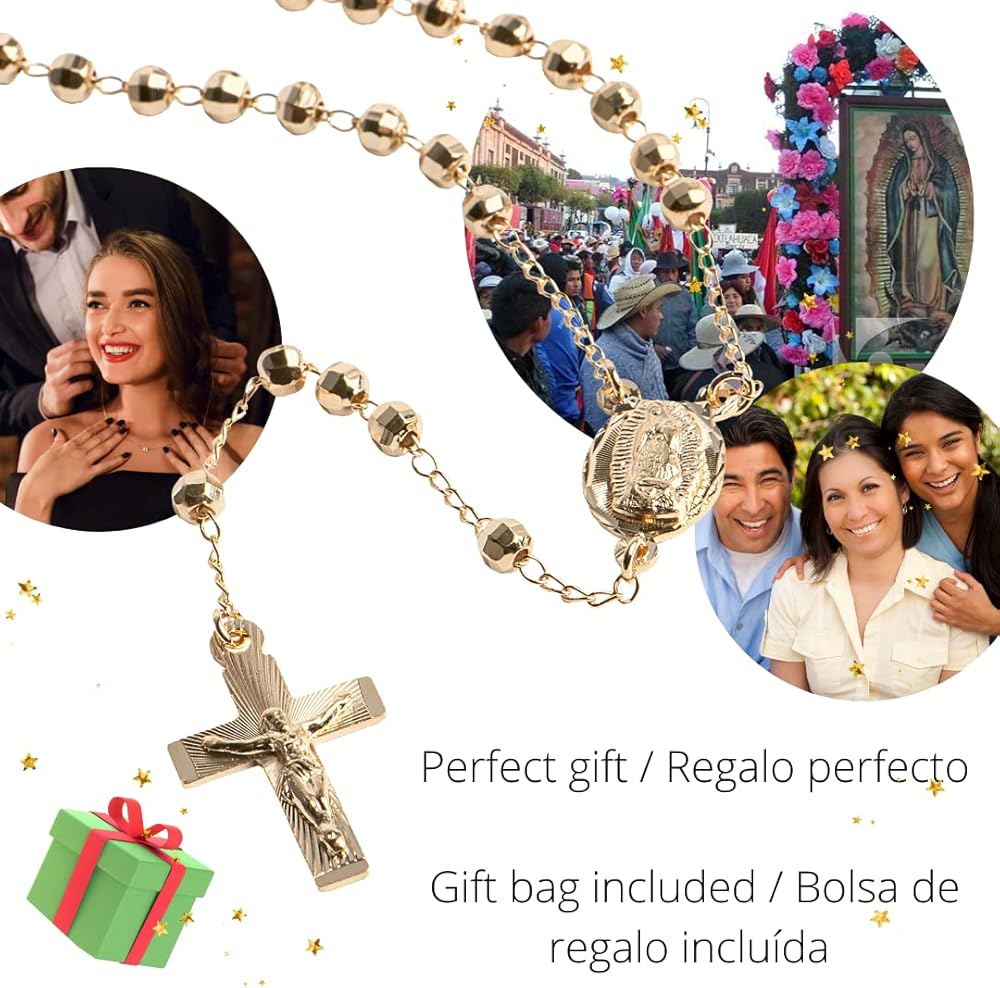 مسبحة فيرجن دي غوادالوبي مملوءة بالذهب، قلادة مسبحة من الذهب عيار 14 قيراط، مسبحة يسوع المسيح، مجوهرات مسبحة كاثوليكية دينية مكسيكية، سلسلة ذهبية صلبة عيار 14 قيراط، مسبحة صلاة