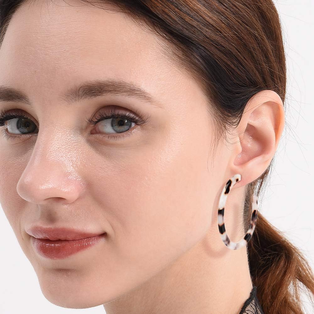 JSJOY أقراط حلقية من الأكريليك الراتنج خفيفة الوزن، أقراط بوهيمية صغيرة من الراتنج، أقراط أكريليك للنساء، لا تسبب الحساسية، أبيض، غلاف سلحفاة، ليوبارد، 3 أزواج