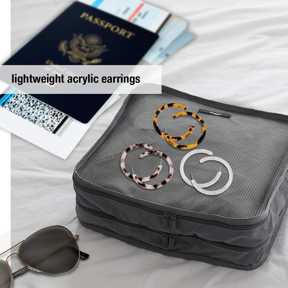 خفيفة الوزن وآمنة: كل أقراط دائرية هندسية للنساء مصنوعة من راتنج الأكريليك وإبر من الفولاذ المقاوم للصدأ، مع سطح أملس، لا يسبب الحساسية، خالية من الرصاص، خالية من النيكل، مناسبة للأذنين الحساسة جيدًا.