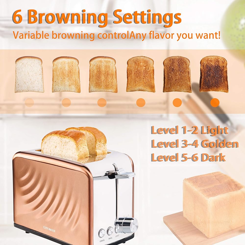 [اصنع إفطارًا مثاليًا في دقائق قليلة] 6 إعدادات لظل الخبز. تحميص تلقائي سريع ومتساوي. تعمل محمصة الخبز ذات شريحتين من Cotomier على تحمير الخبز بشكل سريع ومستمر على كلا الجانبين، من الأعلى إلى الأسفل.