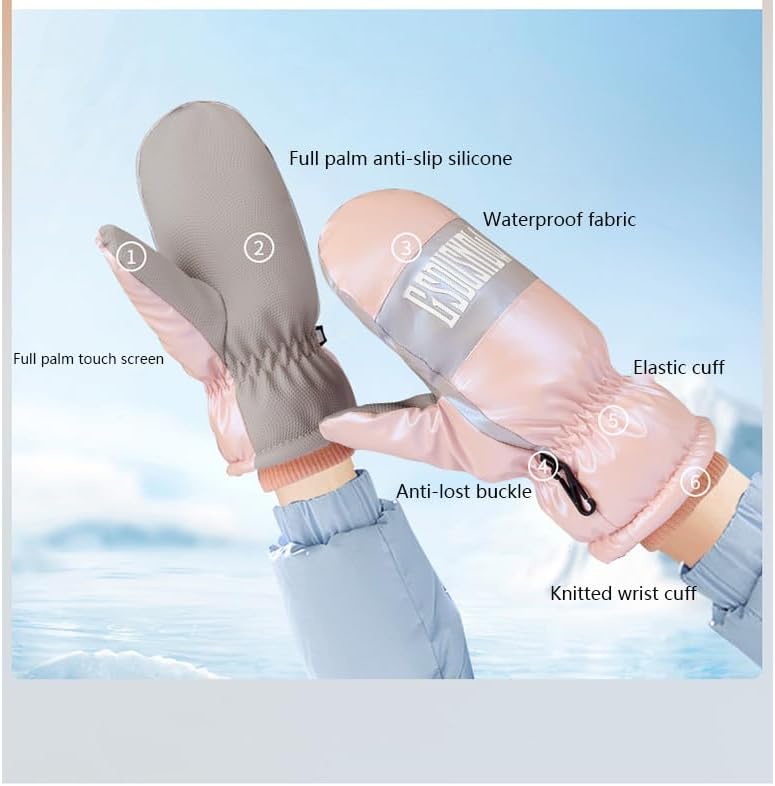 Touch Screen : Full palm touch screen functionality, these ski gloves for women work with all touchscreen devices, allowing you to use your phone or tablet without taking off gloves in freezing winter.