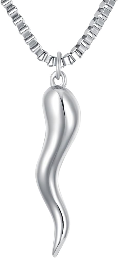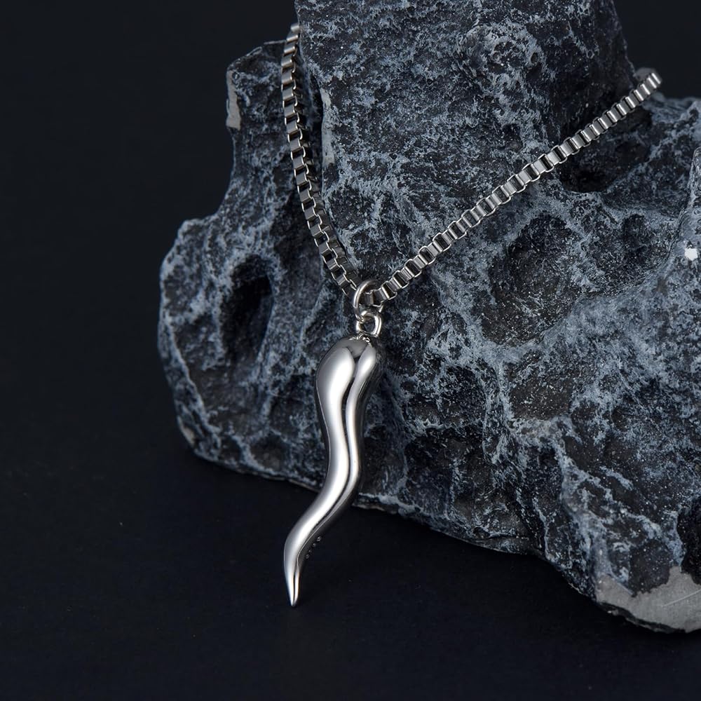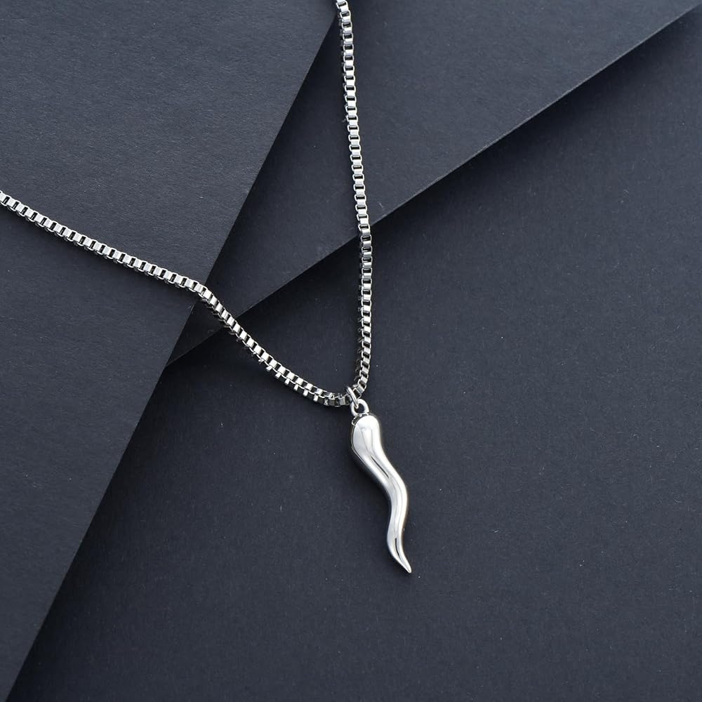 【قلادة قرن إيطالي من الفضة الإسترلينية】هذه القلادة الواقية من التميمة مستوحاة من تميمة الحظ الإيطالية على شكل الفلفل الحار، والتي غالبًا ما يُعتقد أنها تحمي من العين الشريرة، الإيطالية: كورنيسيلو. لقد تم صقل كل التفاصيل ومعالجتها بعناية للتأكد من أن جودة ومظهر القلادة لا تشوبها شائبة ويمكن مطابقتها بسهولة مع مختلف الملابس.
