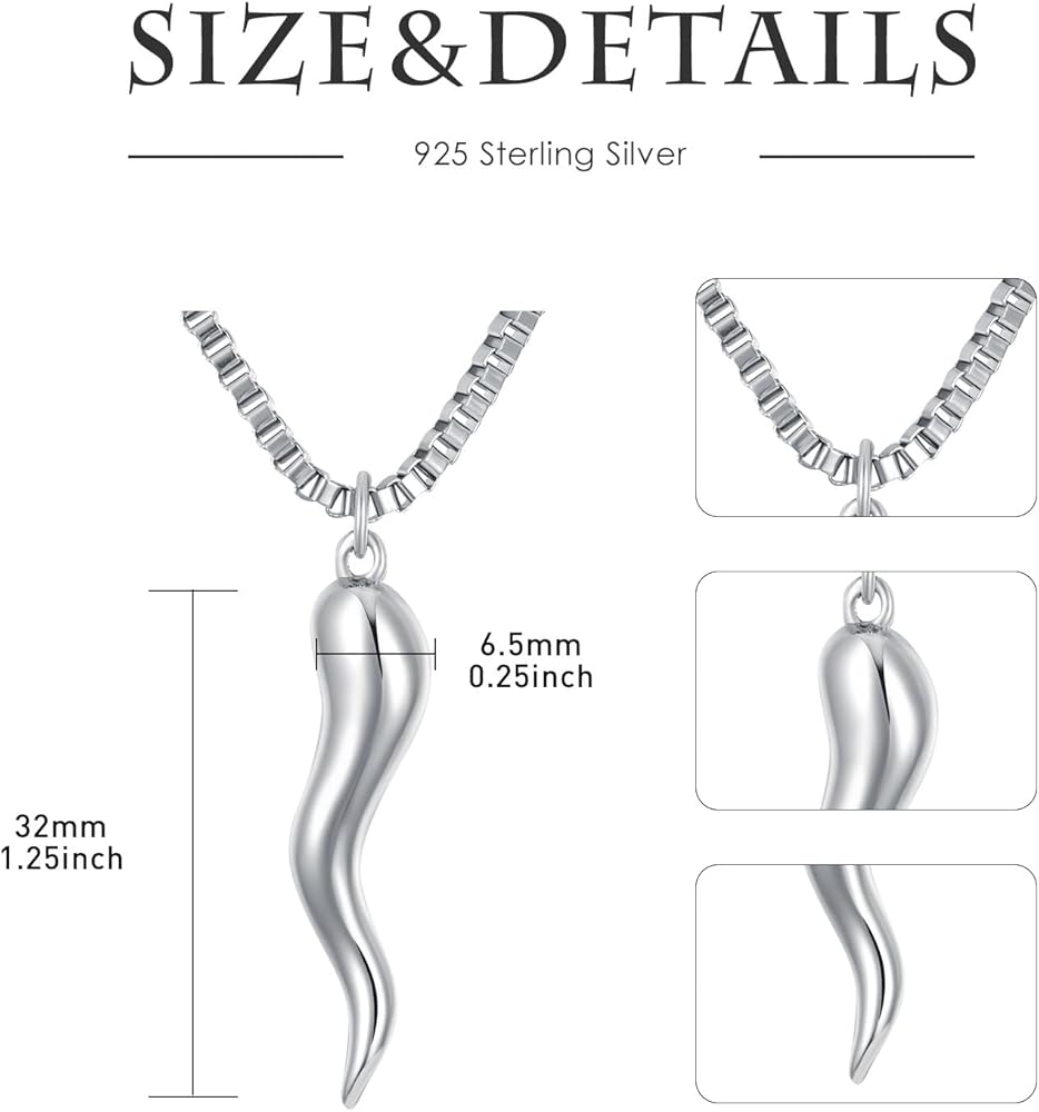 CEKAMA 925 الفضة الاسترليني قلادة القرن الإيطالي للرجال النساء محظوظ كورنيكيلو سحر قلادة مع 22 + 2 بوصة مربع سلسلة إيطاليا مجوهرات عيد ميلاد الذكرى السنوية هدايا عيد الميلاد لأبي أمي بنين بنات سيارة