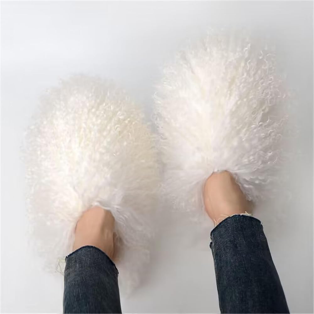 FurinFashion OSL1 Real Ostrich Fur Slippers for Women Big Fluffy Feather Ladies Slides outdoor Footwear Colorful Black Pink Purple Furry Long Hair Fur Shoes for Girls Holiday Travel Wear Fuzzy Looking