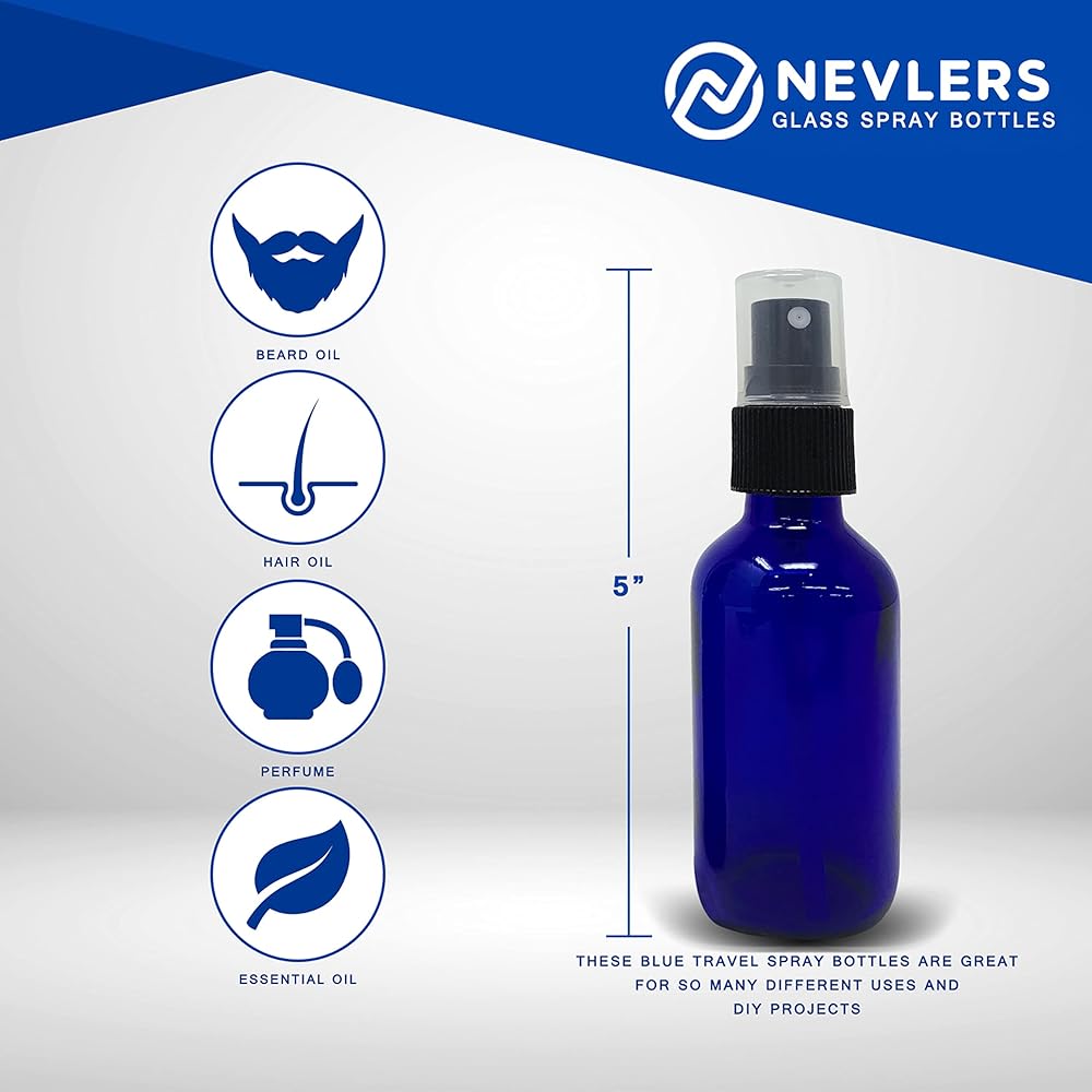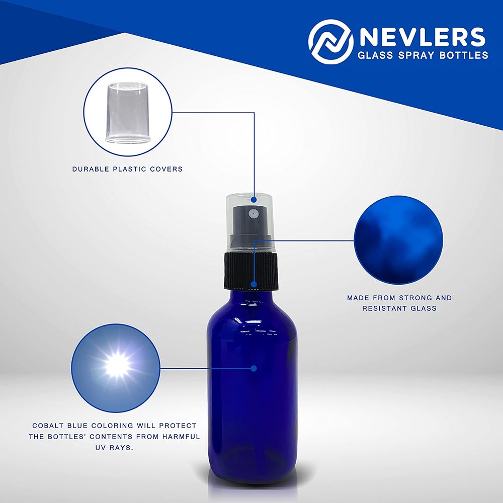 • زجاجات الرش الصغيرة مصنوعة من زجاج أزرق عالي الجودة وتأتي مع أغطية بلاستيكية متينة. لا تبدو الزجاجة الزرقاء الكوبالت جيدة فحسب، بل تحمي محتوياتها من الأشعة فوق البنفسجية الضارة.