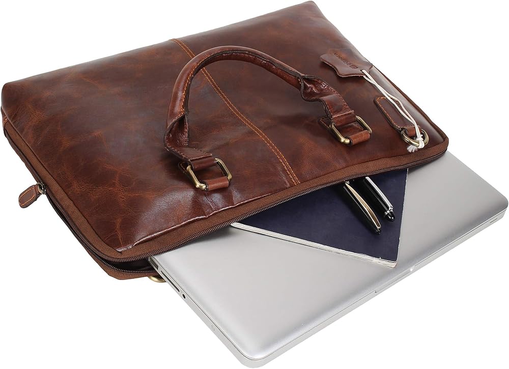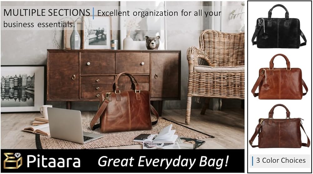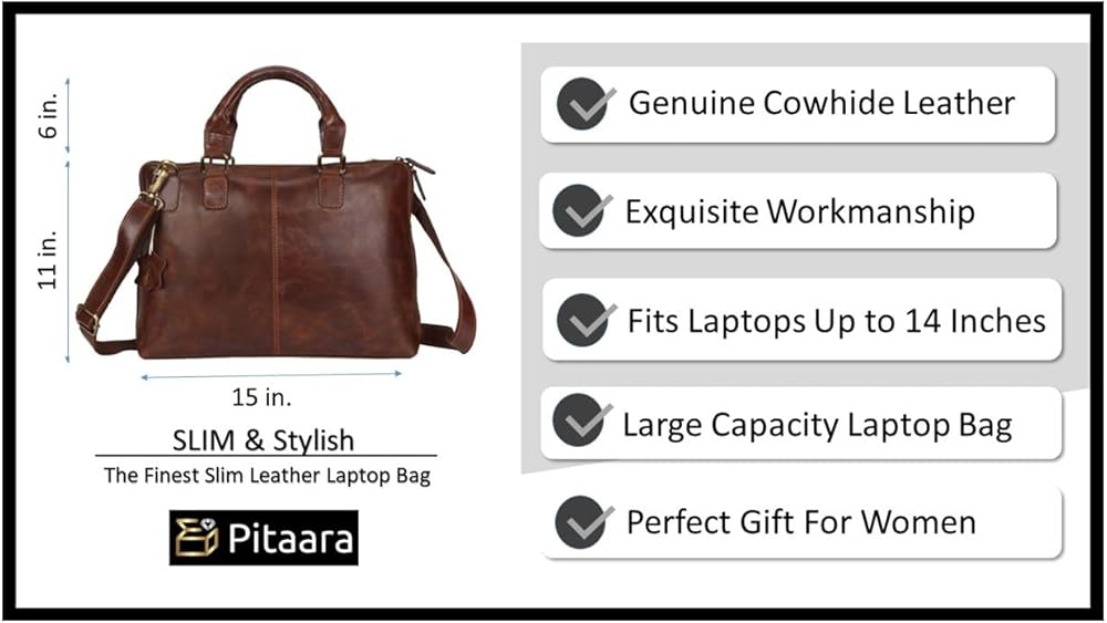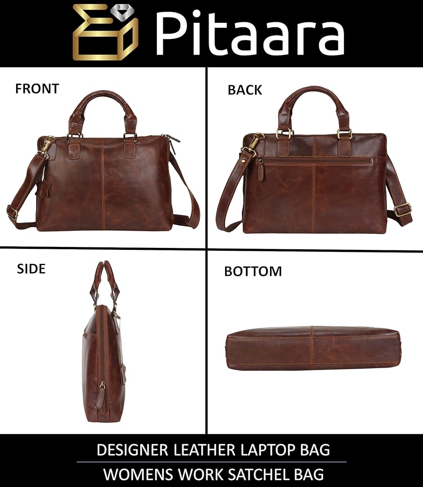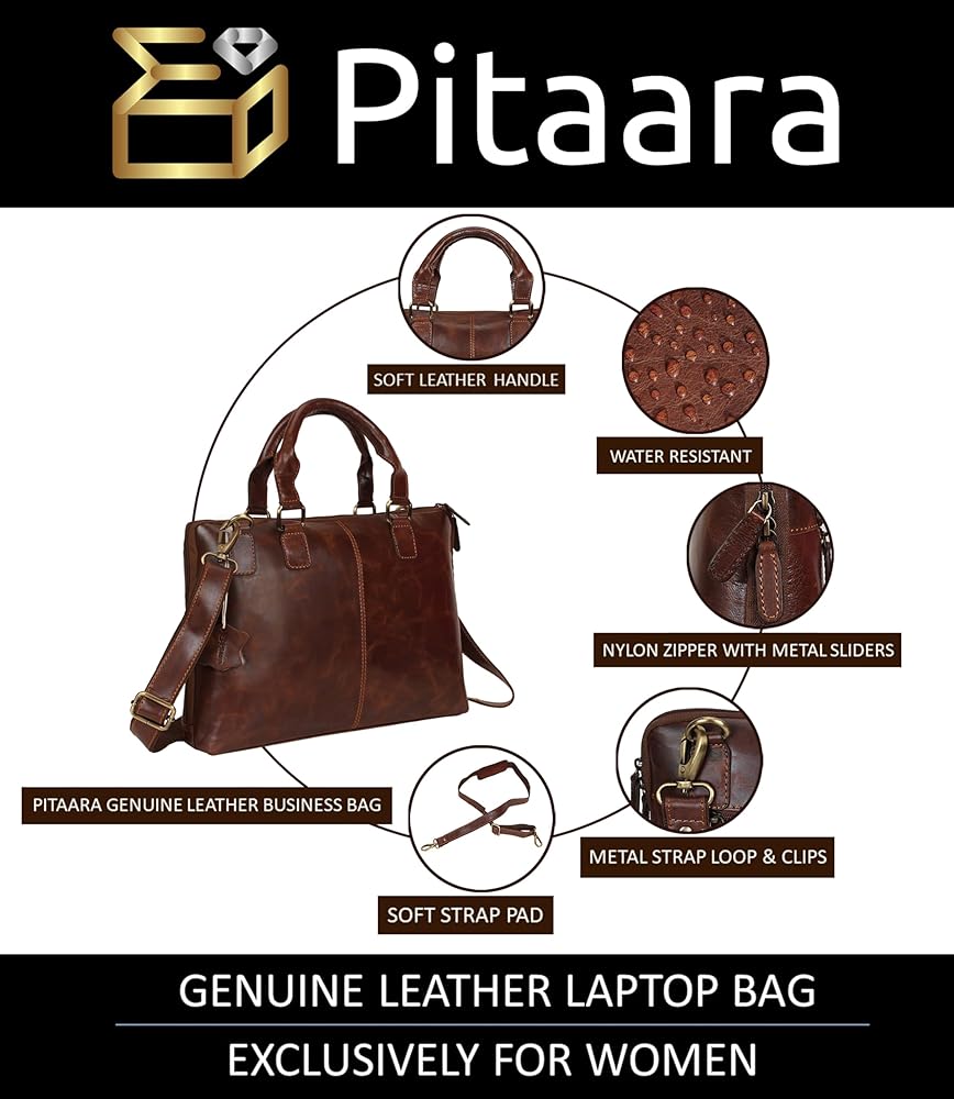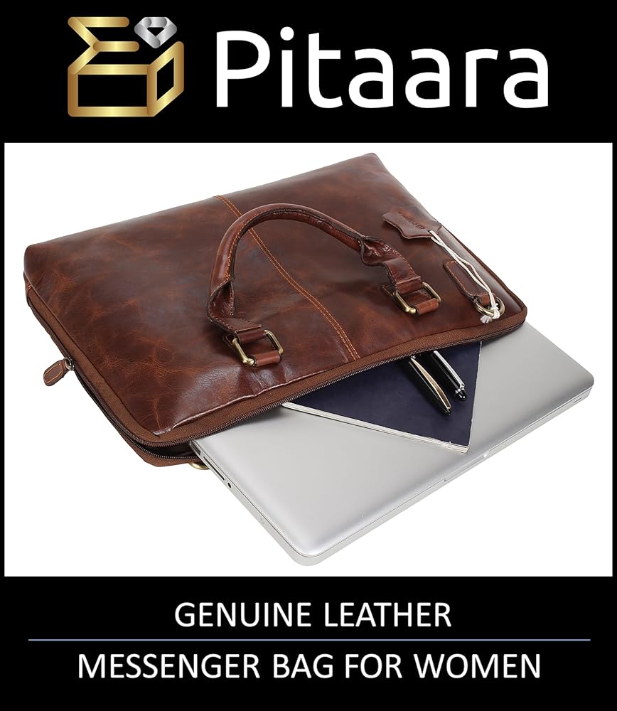 جلد أصلي: حقيبة الكمبيوتر المحمول Pitaara للسيدات مصنوعة من جلد البقر الأصلي على يد حرفيين ذوي خبرة.