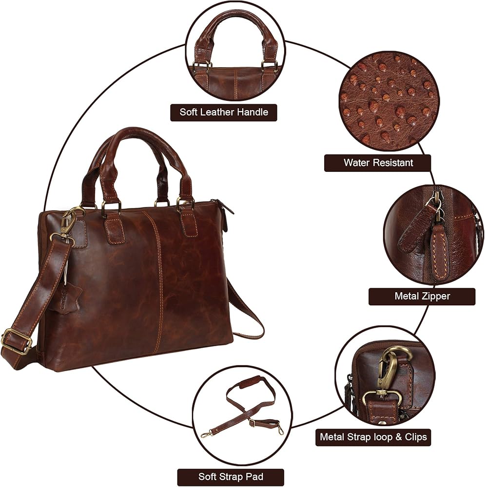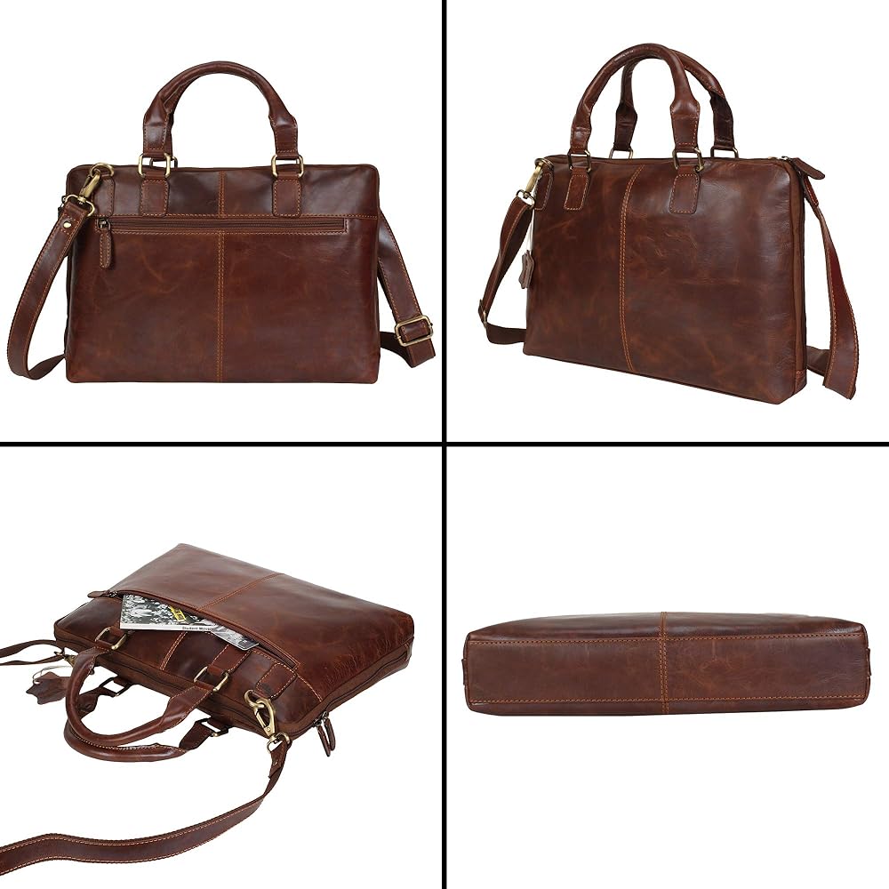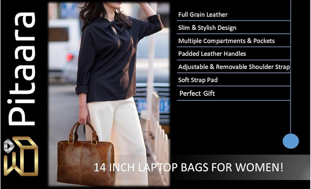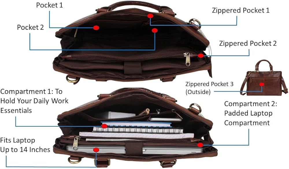 تصميم أنيق: مصممة لتوفير الراحة والمساحة الإضافية، يمكن لحقيبة الكمبيوتر المحمول النسائية المصنوعة من الجلد الأصلي أن تحمل أجهزة كمبيوتر محمولة بحجم 14 بوصة وتحتوي على مقصورتين كبيرتين وجيبين صغيرين وجيبين كبيرين بسحاب في الداخل. والحجرة الكبيرة الأخرى والجيبان بسحاب يمكن استخدامها لحمل الضروريات اليومية مثل دفاتر الملاحظات والمكياج والمخطط والبطاقات وما إلى ذلك. يمكن استخدام الجيبين الصغيرين في الداخل كحامل للهاتف المحمول وحامل قصير للكمبيوتر الدفتري/المحفظة.