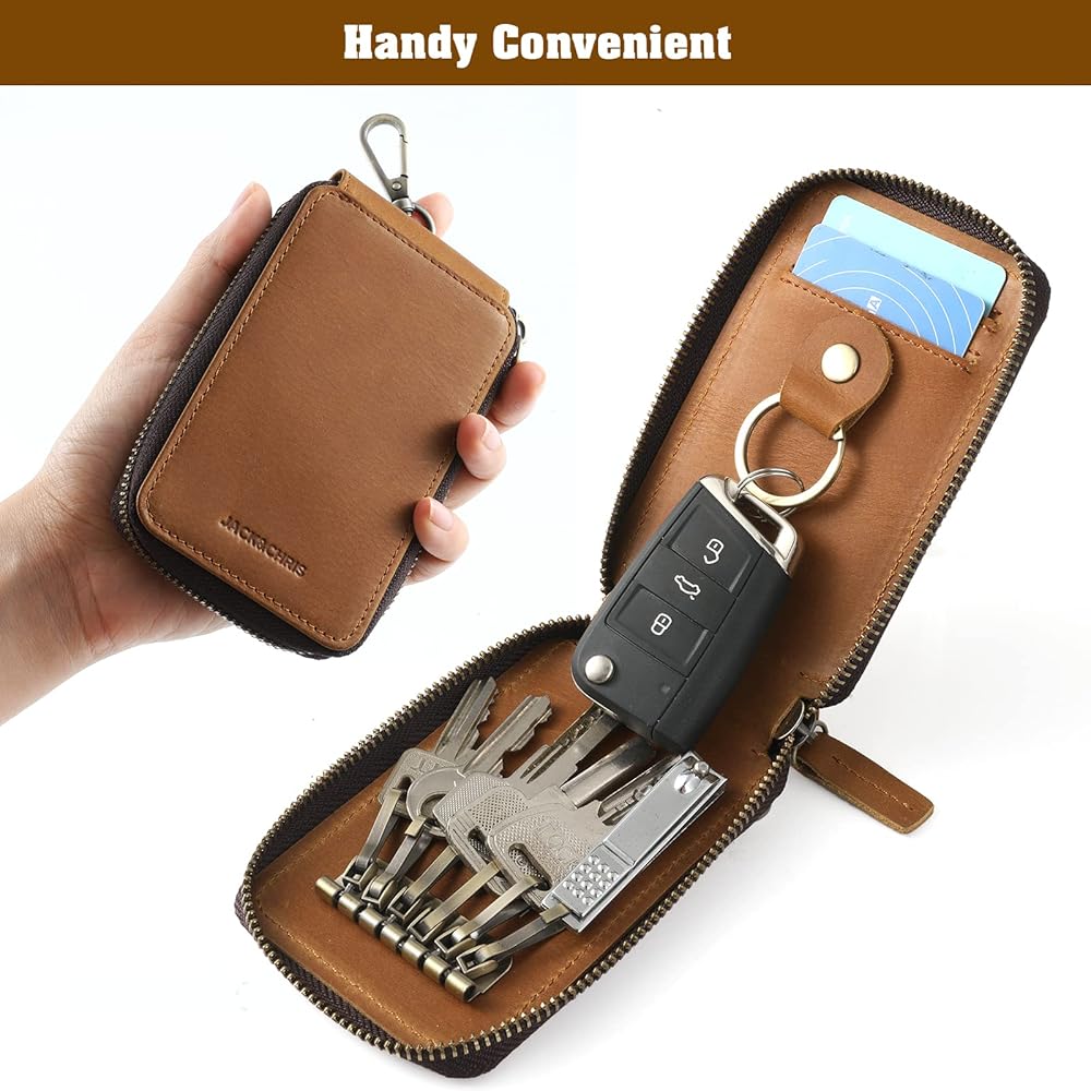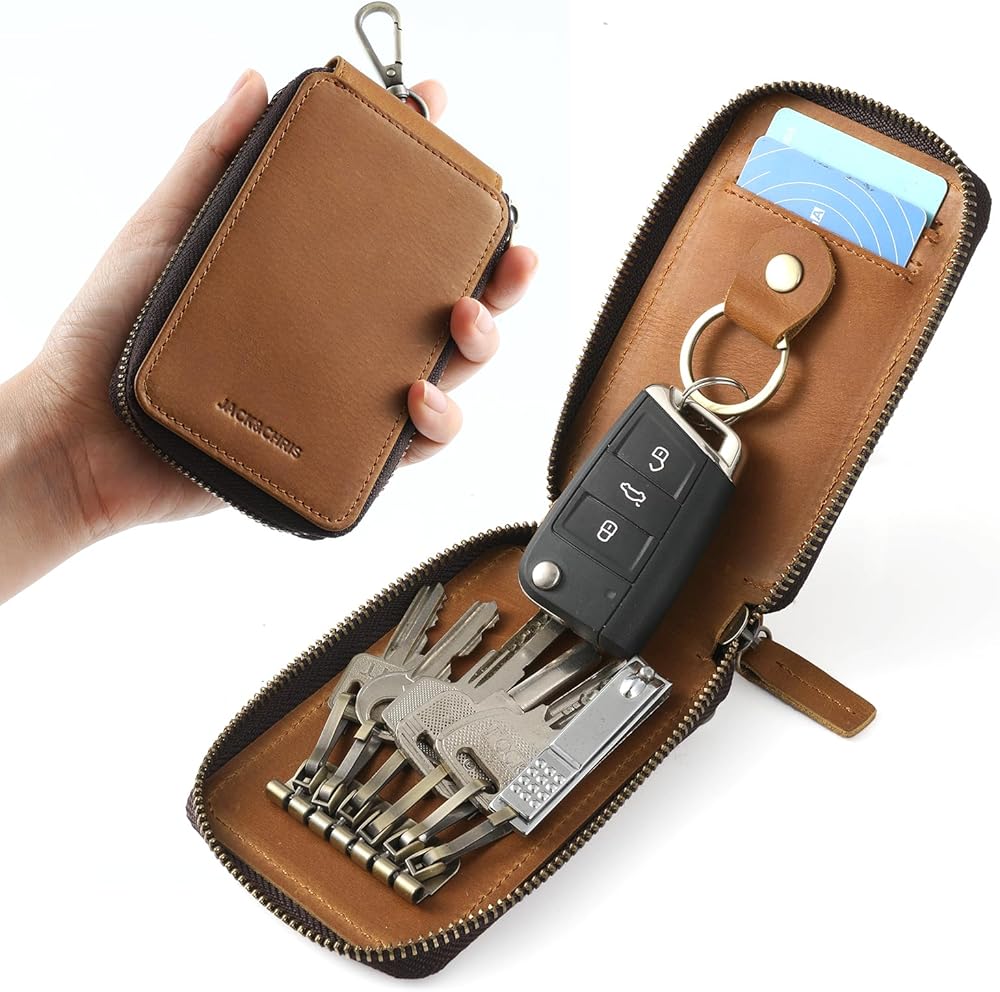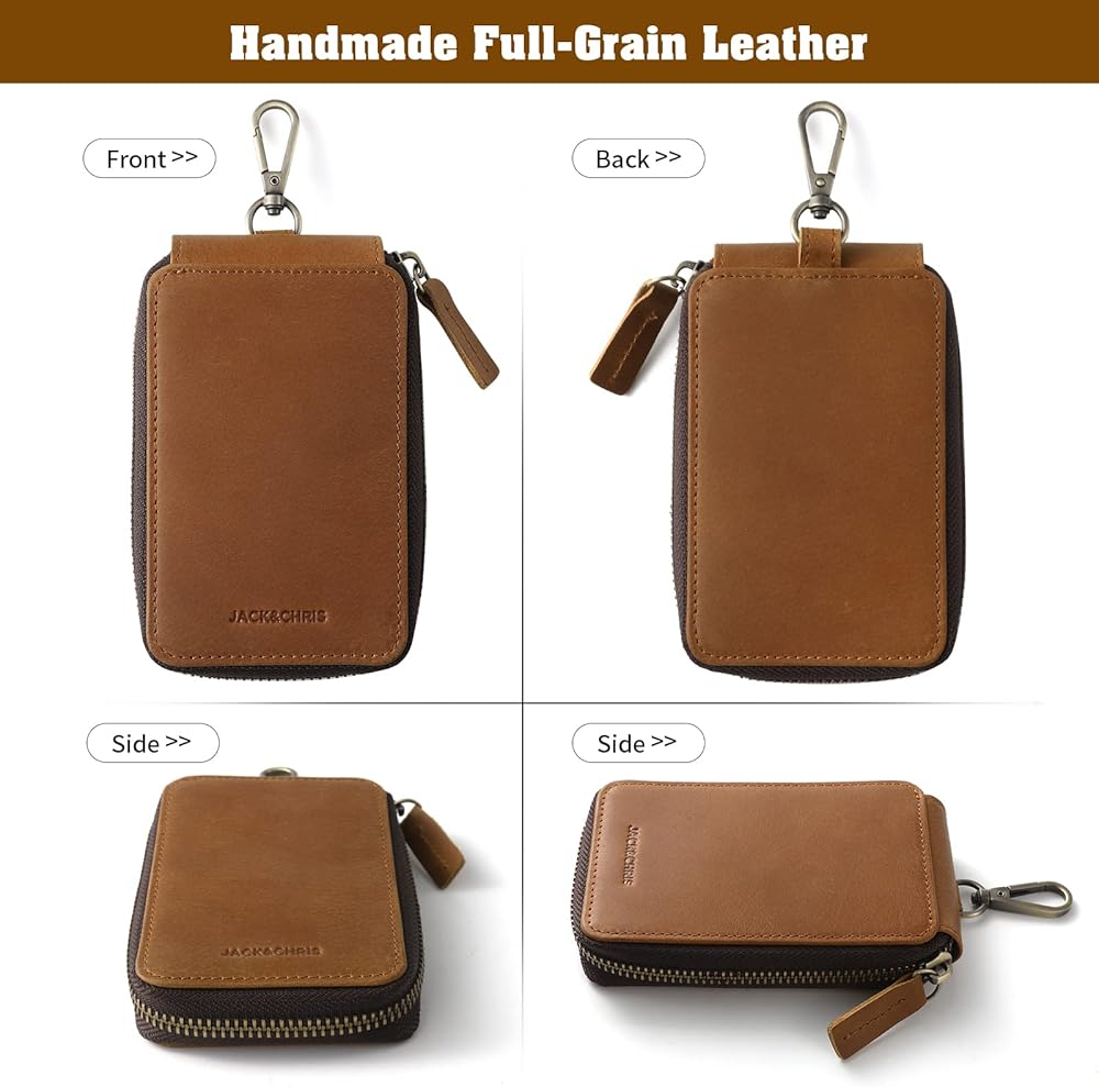 حافظة مفاتيح جلدية محمية بالكامل: حافظة مفاتيح السيارة مصنوعة من جلد محبب بالكامل، مصنوعة يدويًا، ولها ملمس ناعم. توجد لوحة قولبة على كل جانب لتوفير حماية شاملة لمفاتيحك وبطاقاتك.
