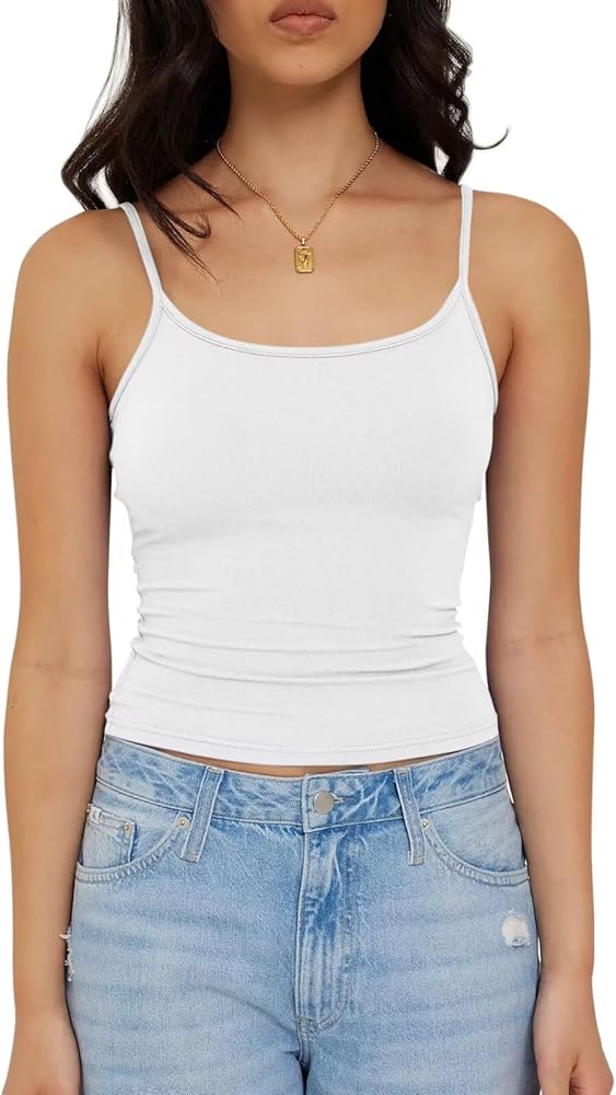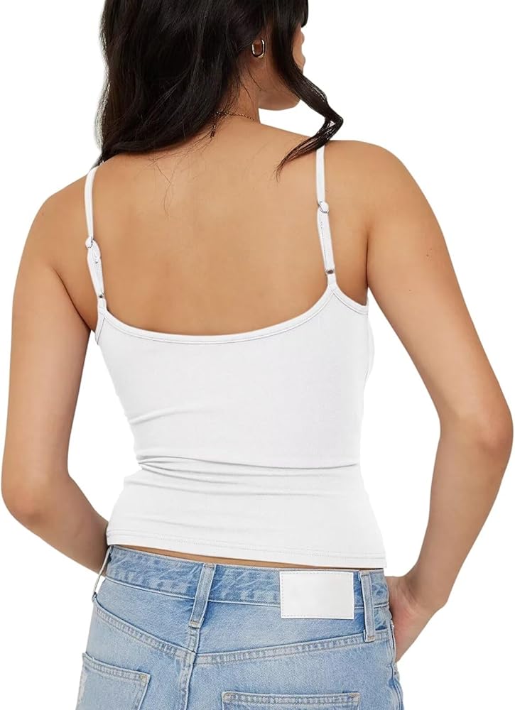 ✔ قميص قصير برقبة واسعة - قميص قصير Y2K، قميص قصير بحزام سباغيتي قابل للتعديل، قميص قصير بدون أكمام أساسي، قميص قصير Y2K، قميص بدون أكمام، مريح.