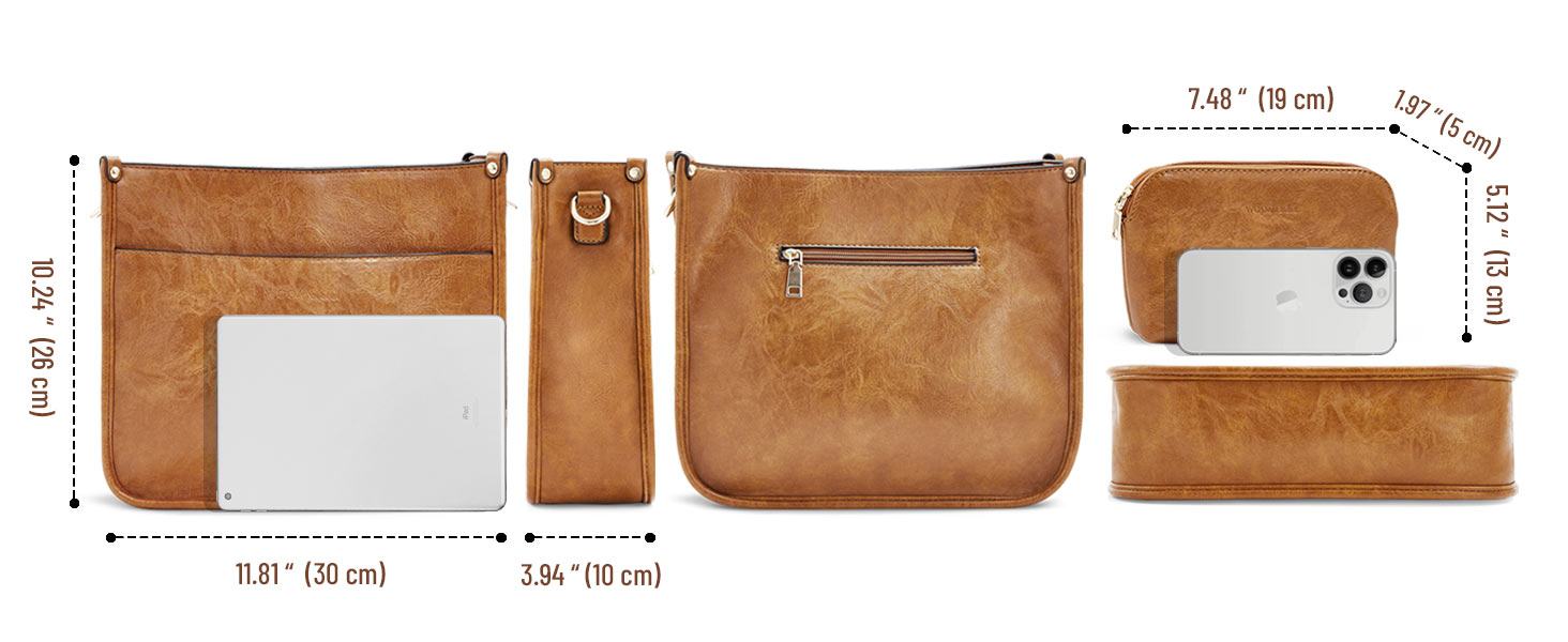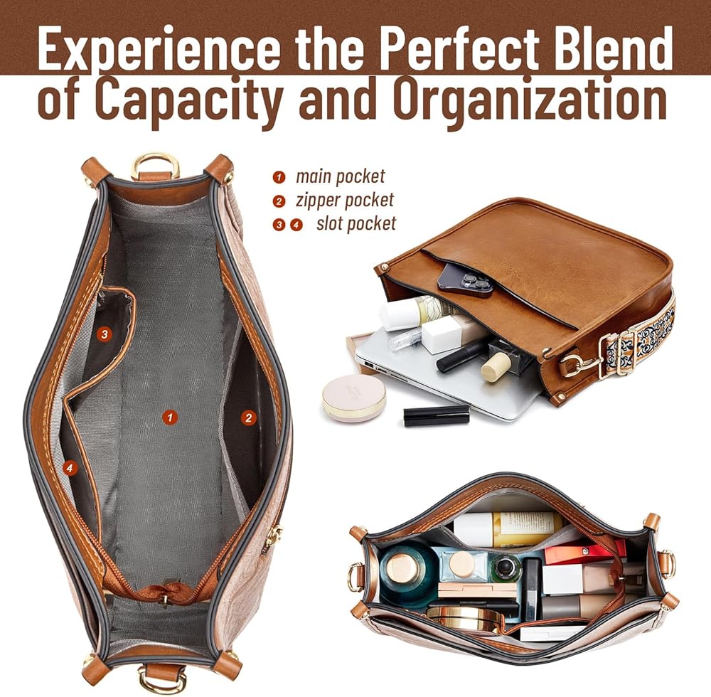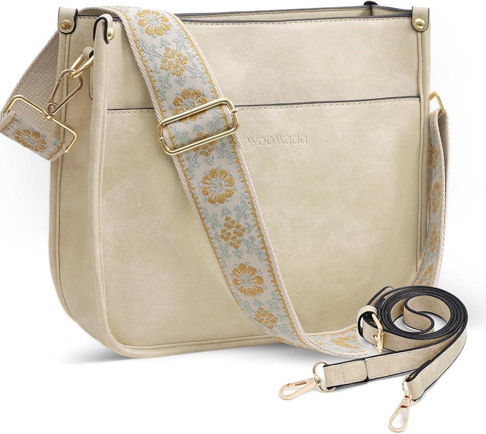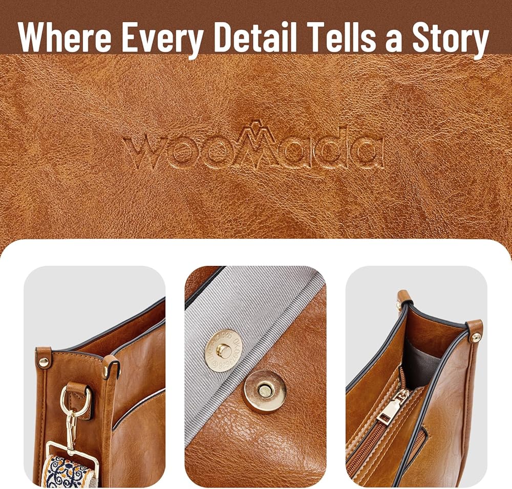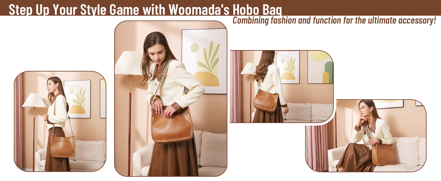 حقيبة يد WOOMADA Hobo للنساء من الجلد النباتي حقائب كروس عصرية مع حزامين قابلين للتعديل