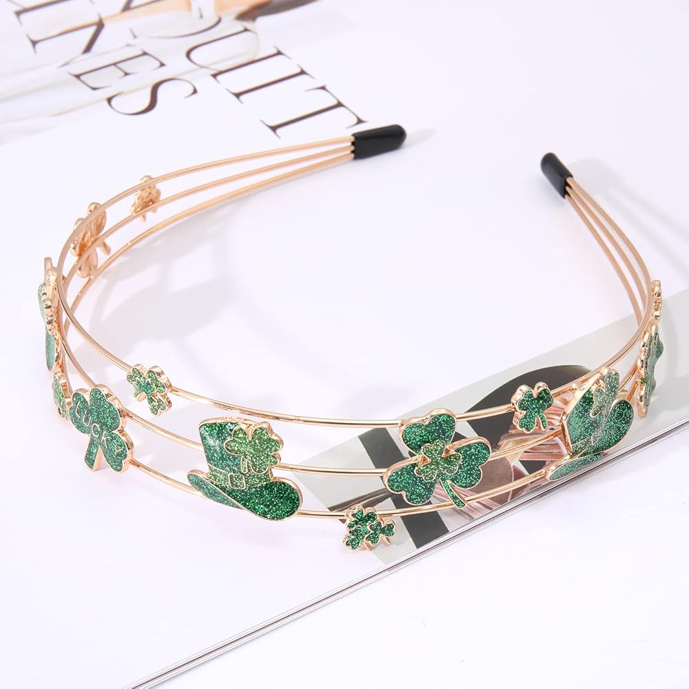 يوم القديس باتريك هو عطلة مليئة بالمرح، والاحتفالات تتطلب عمليًا من المحتفلين ارتداء اللون الأخضر، أضف القليل من اللمعان الإضافي إلى ملابس يوم القديس باتريك الخاصة بك مع عصابات الرأس الجذابة هذه الخاصة بيوم القديس باتريك. تتميز بحلقة شعر ذهبية في طبقات هيكل مغطى بحليات نبات النفل اللامعة، لامعة وأنيقة، ستكون جاهزًا للحفلات في لمح البصر!