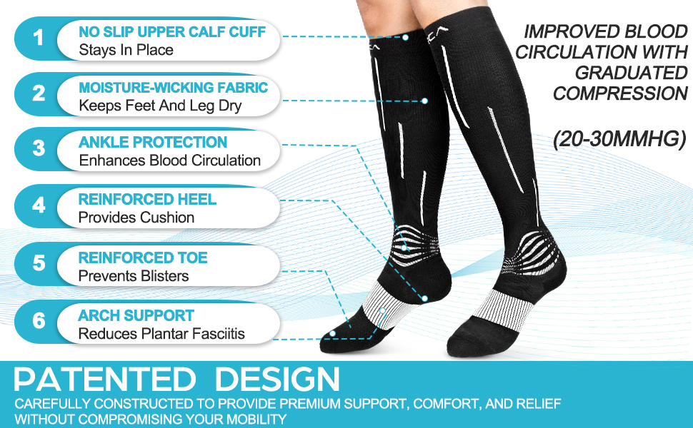 BETTER PERFORMANCE— Overcome the defects of similar products, medical compression socks with no allergies and itchiness. Ergonomic design: 360° perfectly fit your calf and foot curve, which will effectively disperses pressure, keeping your leg warm, lubricating your joints. Different from cheap products, the non-slip fabrics will avoid sliding and tumbling during exercise, It will stay up all day, so you can wear them all day long! BEST CHOICE for sports protection and pain recovery.