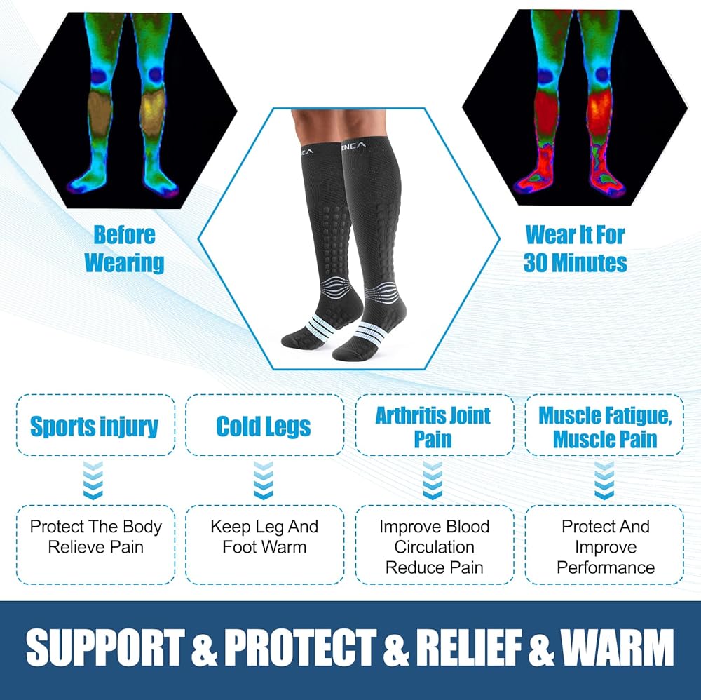 Back To Your Life— Innovatively designed from NEENCA: the #1 BEST BRACE SELLER, NEENCA is a professional outdoor supplies manufacturer, which occupy the first position of medical equipment for so long. This socks are best for pain relief and injuries recovery, all kinds of sports such as running, yoga, workout. Unisex and 90 days full refund for ANY reasons, Lifetime warranty! Best Gifts Idea For Your Friends And Family! ---Please Check Size Chart!