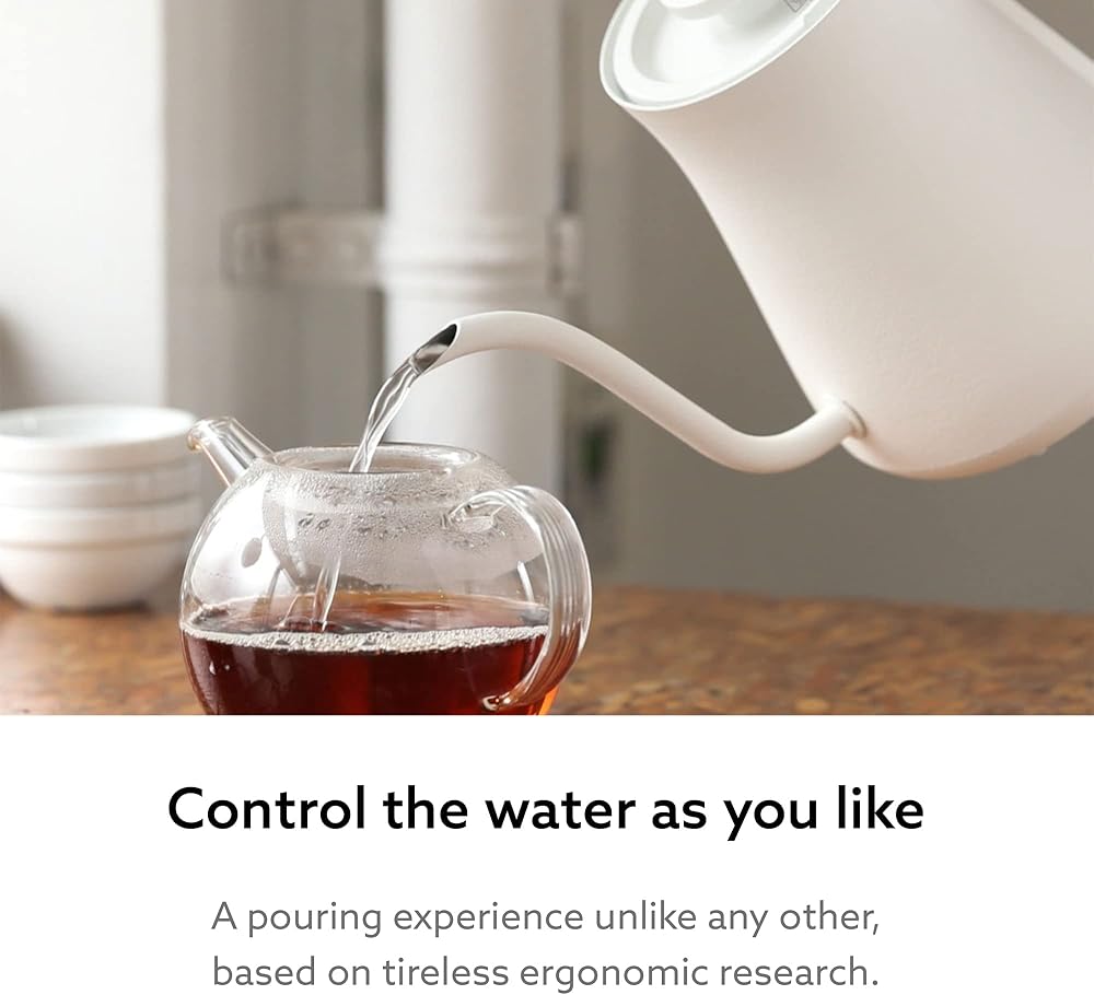 • الصب الدقيق: بالمودا، تم تصميم فوهة الصب الدقيقة في الغلاية للحصول على معدل تدفق الصب الأمثل. تجربة صب لا مثيل لها، بناءً على الأبحاث المريحة التي لا تعرف الكلل. يتناسب المقبض بشكل مريح مع يدك ويتدفق الماء الساخن بسلاسة ونظافة من الفوهة، مما يتيح لك توجيه التدفق بالضبط حيث تريد. بدءًا من صب الماء الزائد بعناية وحتى ملء الأكواب يوميًا، تعد هذه الغلاية رفيقًا جميلاً ومريحًا