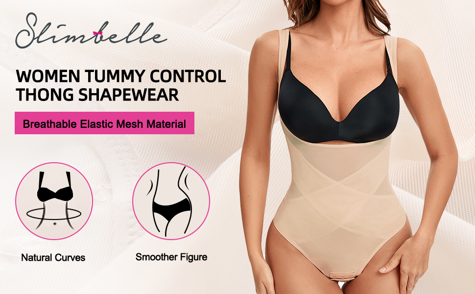 • ❤️بدلة ثونغ يجب اقتناؤها: بدلة الجسم SLIMBELLE لتنحيف الخصر مع سراويل داخلية رفيعة تساعد على تنعيم البطن والخصر والظهر. الحد الأدنى من درزات الخياطة يجعلها غير مرئية تحت جميع ملابسك أو ملابسك الضيقة. جسم عملي لطيف يجب عليك إظهار شخصيتك النحيفة وتكون أكثر ثقة.
