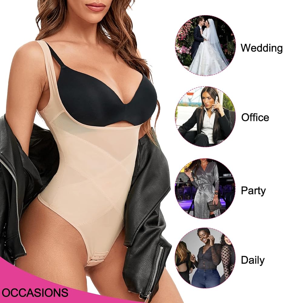 • ❤️صدر مفتوح على شكل حرف U: تصميم صدر مفتوح خاص على شكل حرف U يجعل صدرك أكثر انتصابًا وجاذبية، ارتديه مع حمالة الصدر المفضلة لديك لتجميع ورفع صدرك. يوفر مشكل الجسم للتحكم في البطن تحكمًا فعالاً في الإبط وتنعيم دهون الظهر، مما يخلق صورة ظلية أنثوية أنحف.