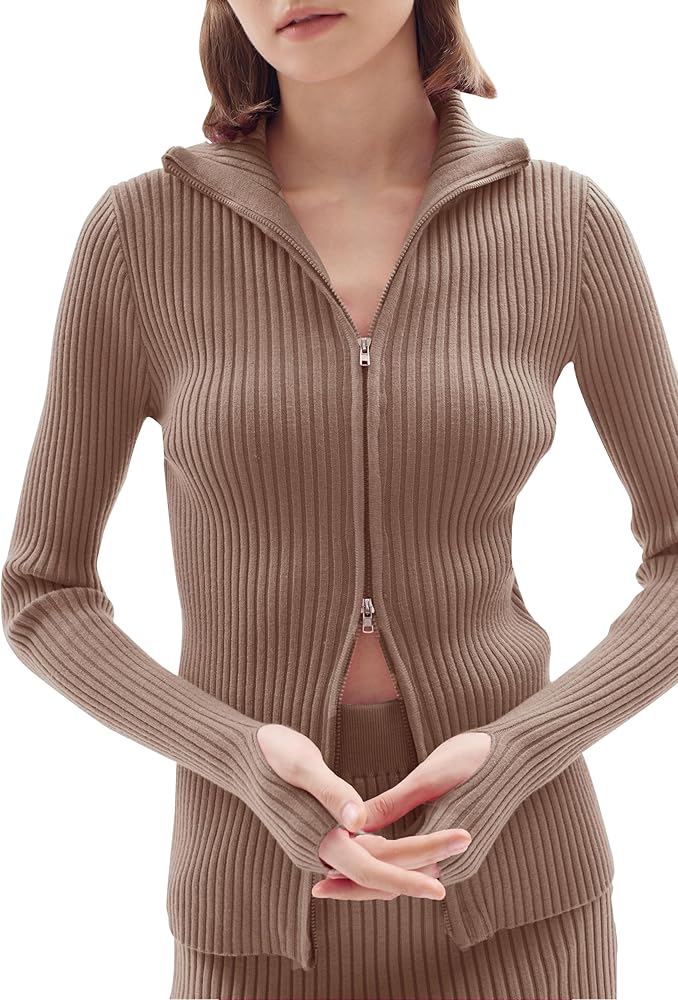 💕الخامة: 65% قطن و35% بوليستر. سترة نسائية بسحاب مصنوعة من أقمشة عالية الجودة مسامية ومريحة وصديقة للبشرة وناعمة الملمس ومتينة ودافئة. مقاس نحيف مثير، خامة محبوكة عالية الجودة صديقة للبشرة مريحة، تبقيك دافئًا في الأيام الباردة.