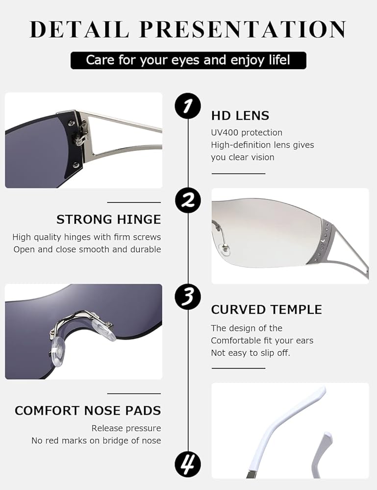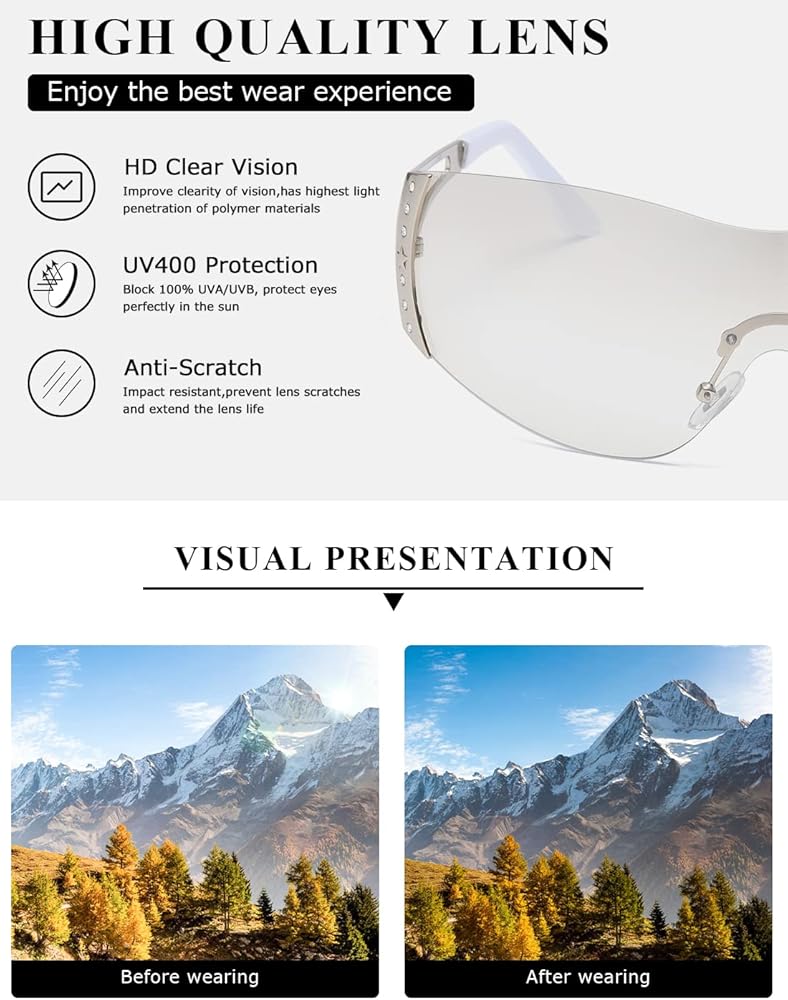 تتميز نظارات KIMORN Vision الشمسية الملتفة حول النظارات الشمسية المستقبلية بتصميم من قطعة واحدة ومسطح. تصميم العدسة من قطعة واحدة مليء بالتكنولوجيا المستقبلية وهو عصري للغاية.