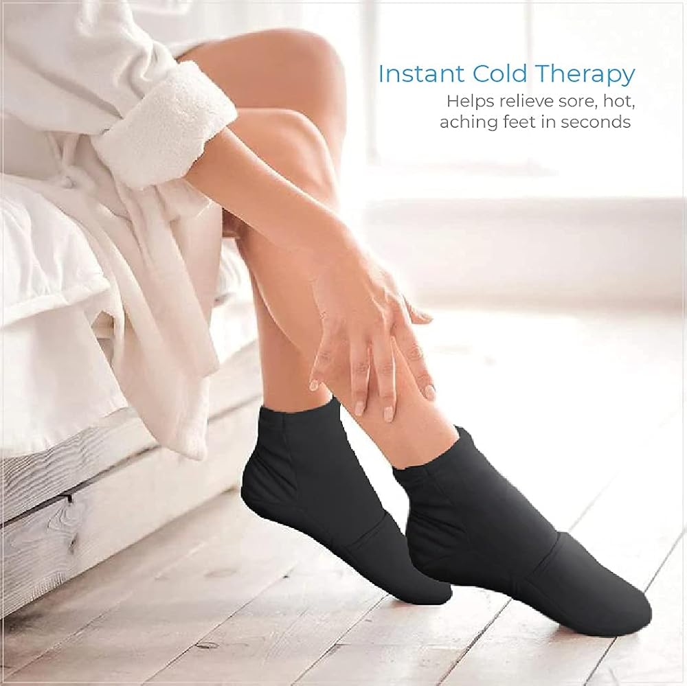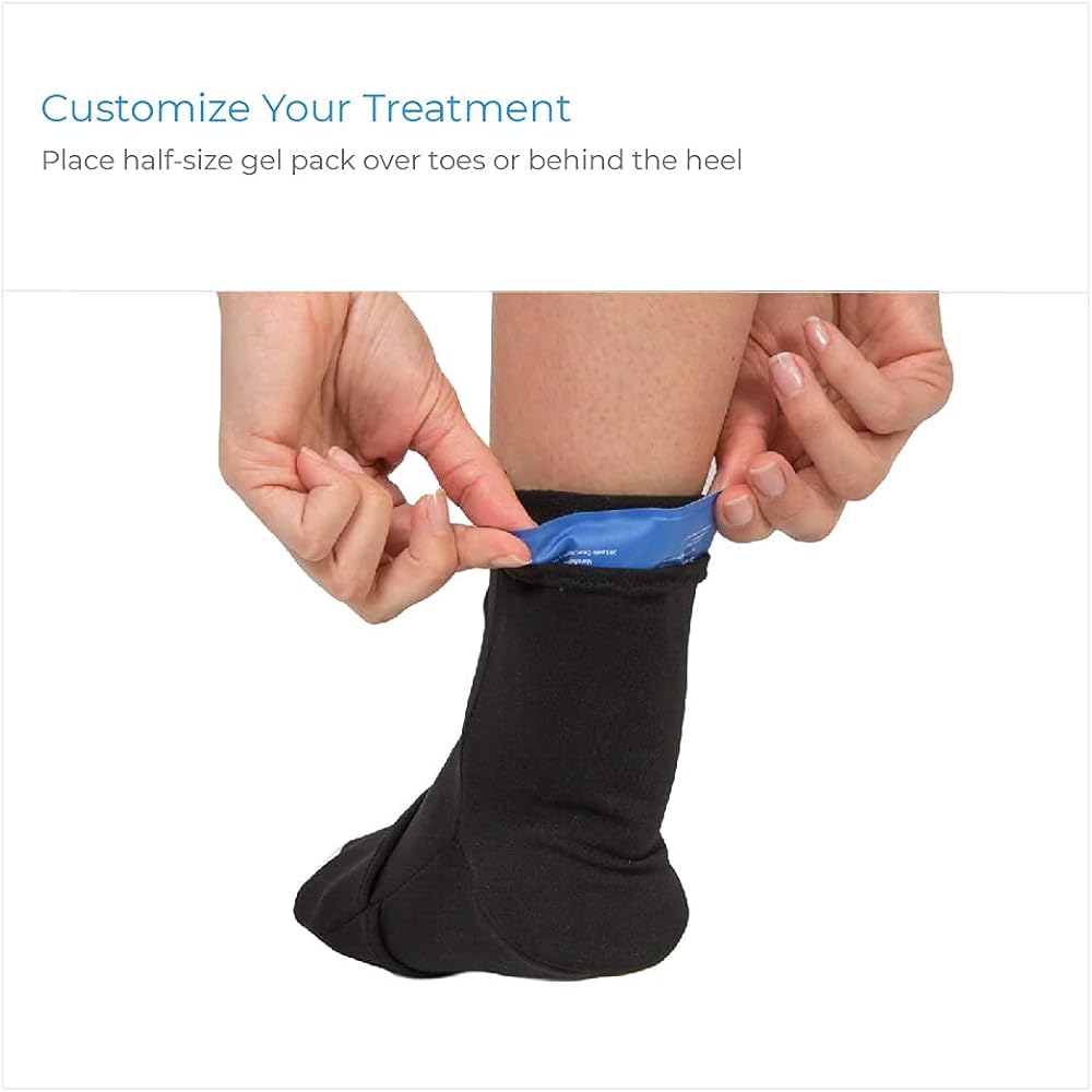 • INCLUDES: one pair of comfortable nylon material cold socks, four full-foot-length gel packs, and four half-size gel packs.