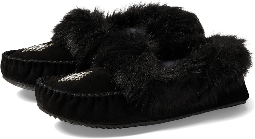 Keep your feet supple and protected wearing Manitobah Mukluks Street Moccasin footwear. Leather upper. Faux shearling or fur lining. Textile insole. Slip-on style. Round toe. Stitched upper panel with bead detailing on vamp. Synthetic outsole.