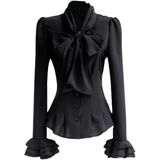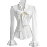 رقبة على شكل فيونكة، تصميم مكشكش، قمصان عمل مكتبية كاجوال