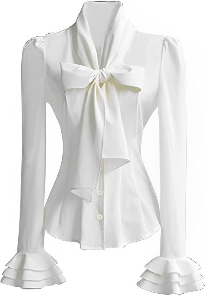 بلوزة نسائية من Mosocow على الطراز الفيكتوري ورقبة على شكل فيونكة وأكمام طويلة وقميص عصر النهضة