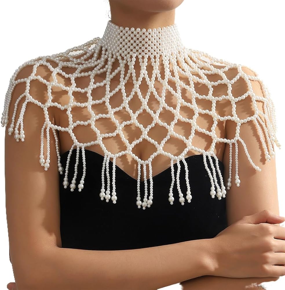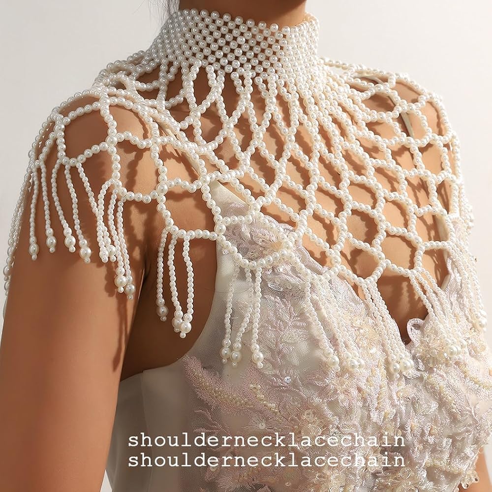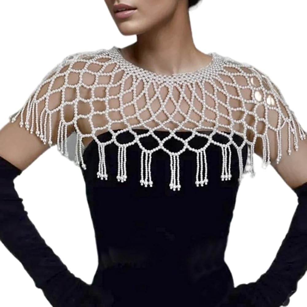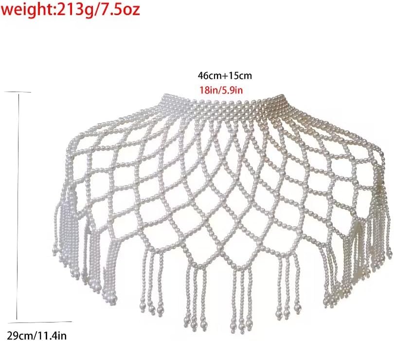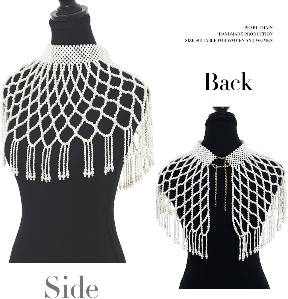 Shawl necklace body chain is made of handmade from white pearls,and its size is fit women well, It can be adjustable appropriately with the extended chain,You can adjust the necklace and chest according to your preferences.So you don't worry about the length