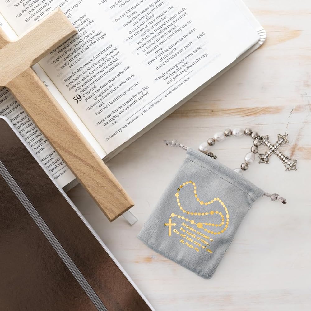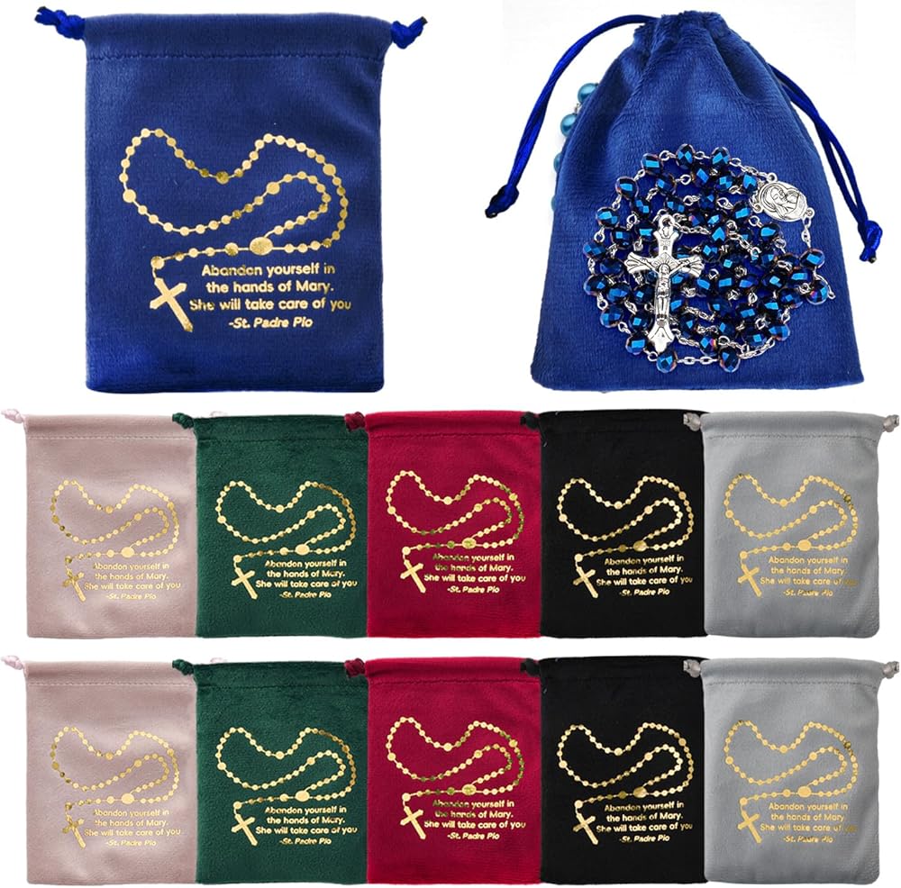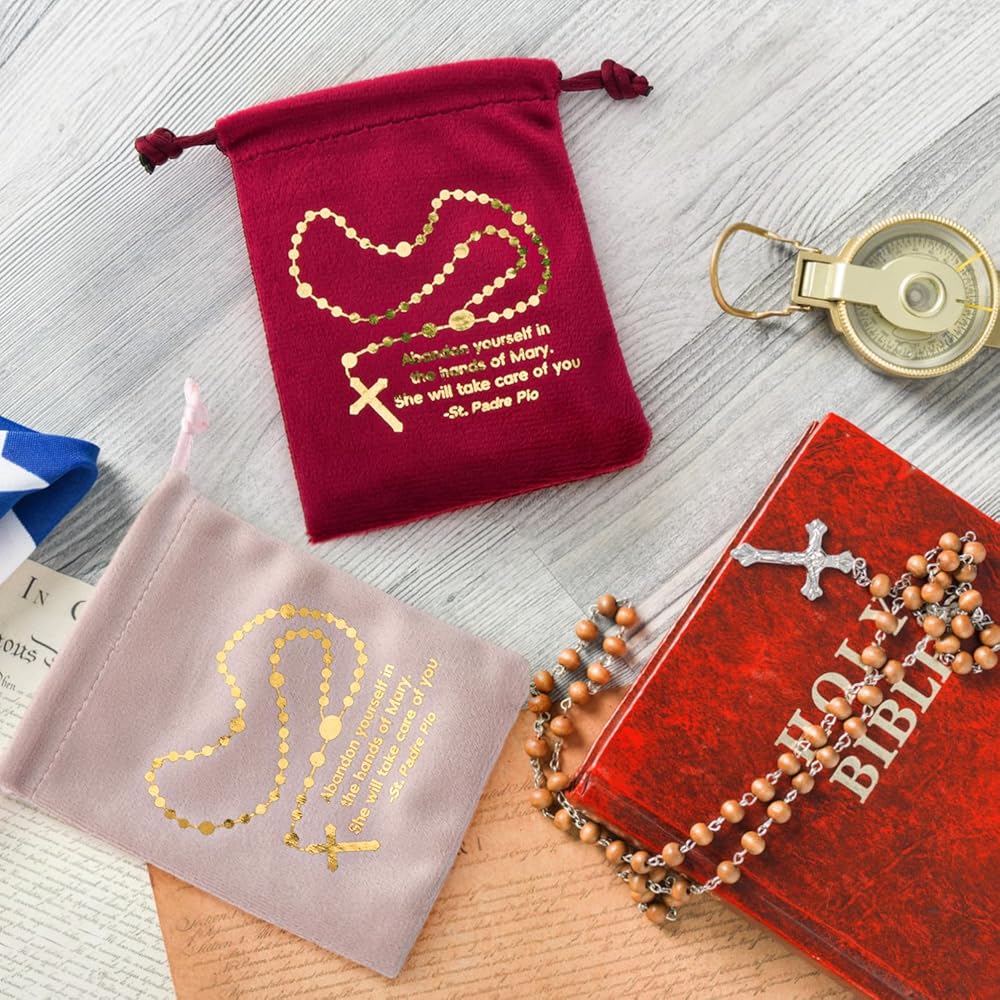 Suitable size: these drawstring rosary bags measures about 8 x 10 cm/ 3.2 x 3.9 inches, portable and lightweight, providing sufficient space to hold your rosaries