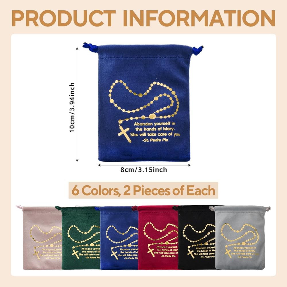 What you will receive: 12 pack of drawstring rosary pouches in 6 different colors, each color has 2 pack, more color choices for multiple uses