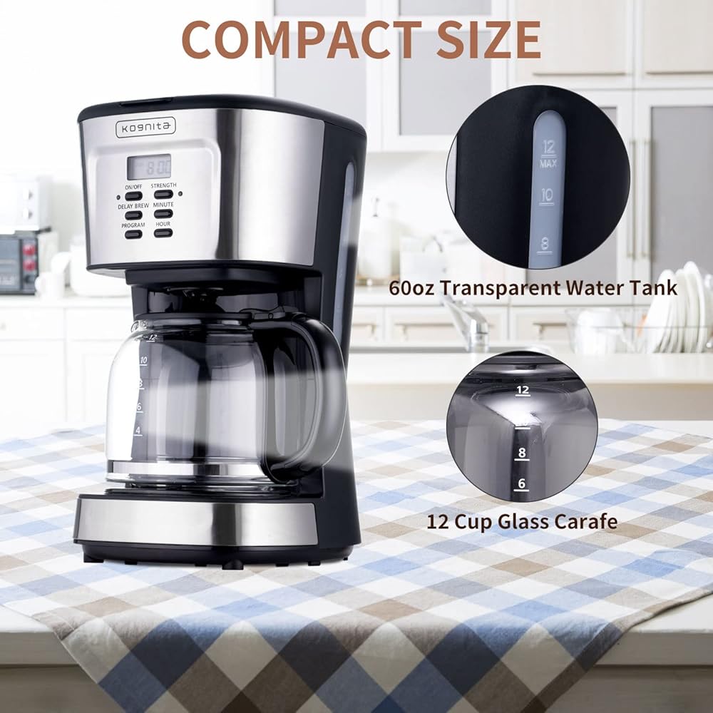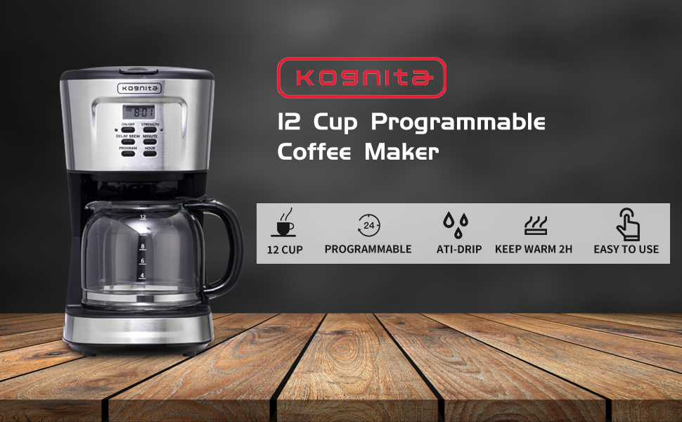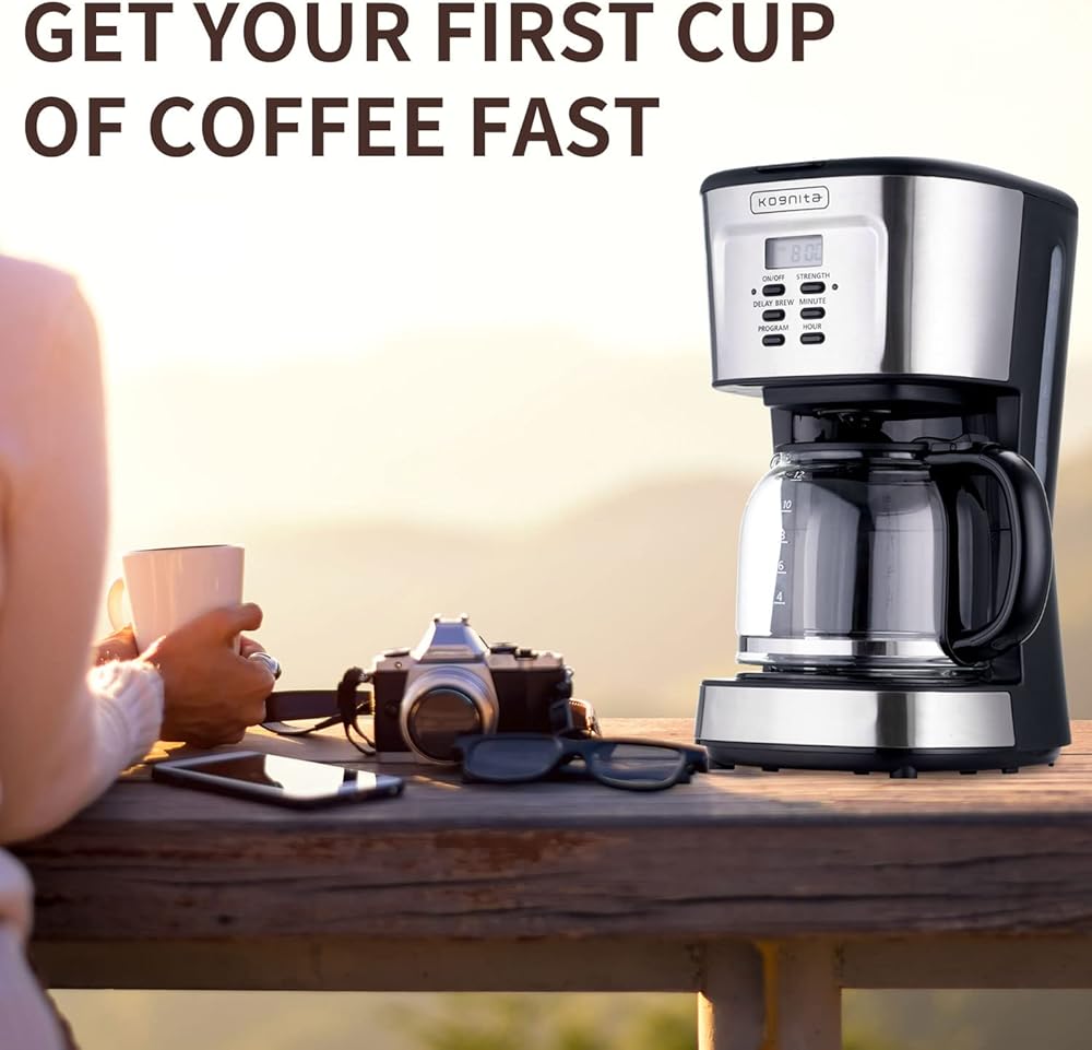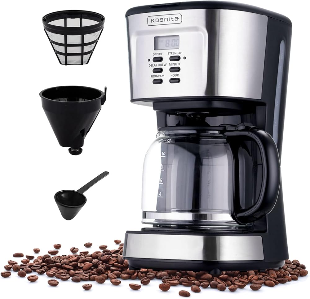 ماكينة صنع القهوة الحرارية 12 كوب من كوجنيتا، ماكينة صنع قهوة صغيرة قابلة للبرمجة مع إبريق زجاجي وفلتر، آلة صنع القهوة Dirp، تحافظ على الدفء، التحكم في قوة المشروب، إيقاف تلقائي للمشروب السريع 900 وات