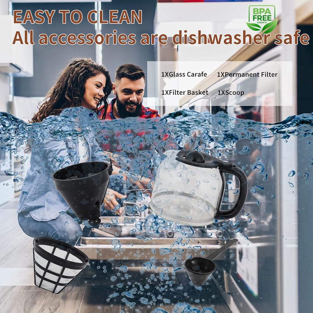 ☕[سهلة التنظيف] سلة الفلتر والإبريق الزجاجي آمنان للغسل في غسالة الأطباق، التنظيف سهل، فقط قم بتنفيذ 2 أو 3 دوائر بالماء البارد فقط لتنظيف الجهاز قبل تخمير أول كوب من القهوة أو بعد عدة مرات من الاستخدام، لا الفوضى المتبقية حول التنظيف. استمتع بحياتك الرائعة مع ماكينة صنع القهوة لدينا الآن.