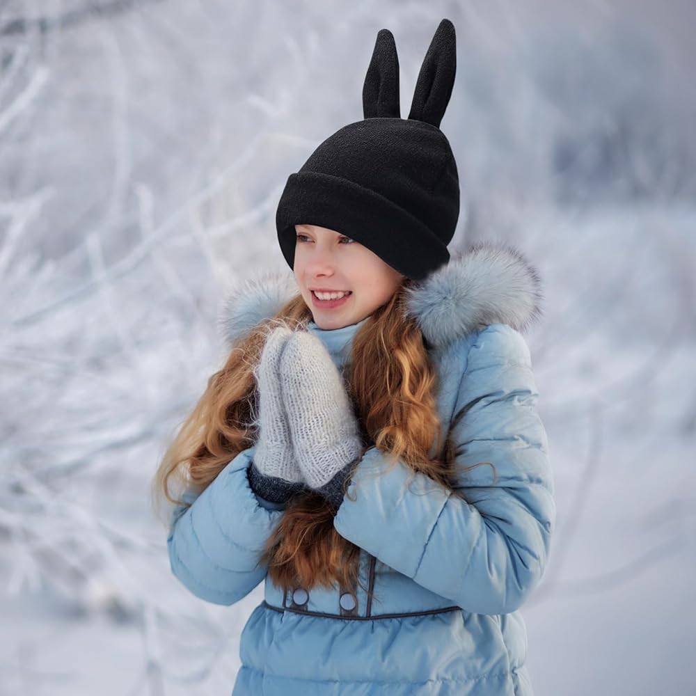 مقاس مثالي: قبعة شتوية بتصميم أرنب مع تمدد جيد، مناسبة لمحيط الرأس أقل من 55 سم - 60 سم/21.5 انش - 23.5 انش، مناسبة تمامًا لمعظم مقاسات الرأس، تغطي أذنيك في الأيام الباردة لمقاومة الرياح الباردة. (يرجى التحقق من المقاس قبل الشراء.)