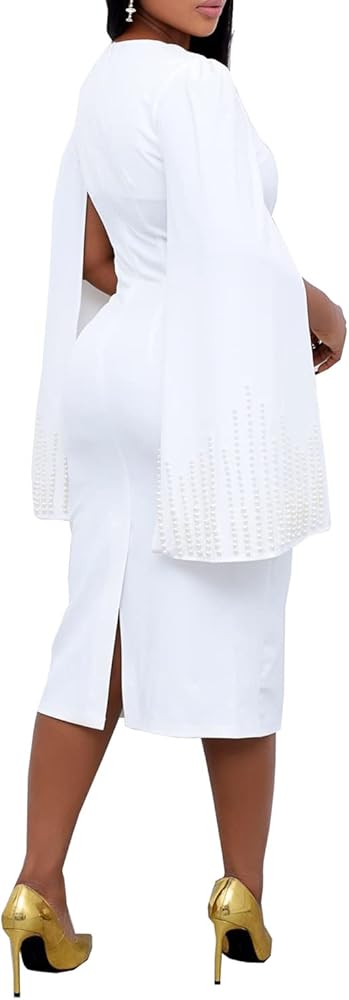 المزايا: أكمام طويلة مشقوقة، جذابة للجسم، خصر عالي، طباعة ثابتة، كم طويل من اللؤلؤ المطرز، طول تحت الركبة. ناعم ومريح في الارتداء، يظهر أفضل منحنياتك. تطابق مثالي مع الكعب العالي والمجوهرات.