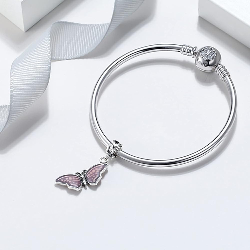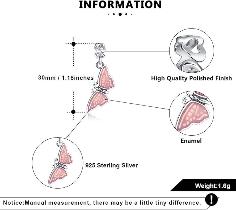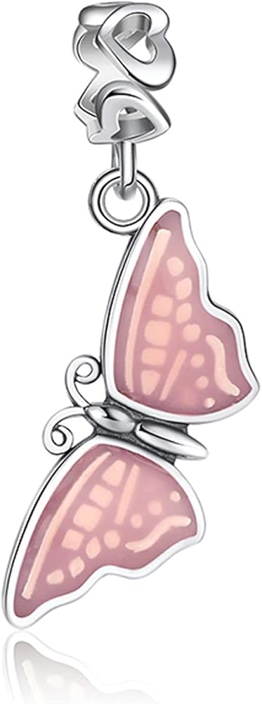 【المادة】تعليقة الفراشة الوردية زيون مصنوعة من خرز الفضة الإسترليني عيار 925 الأصلي مع مينا وردية. ''S925''مختوم للسلطة. آمن بنسبة 100% على البشرة الحساسة.