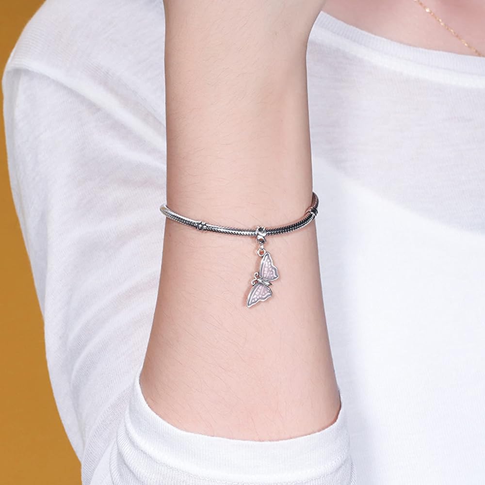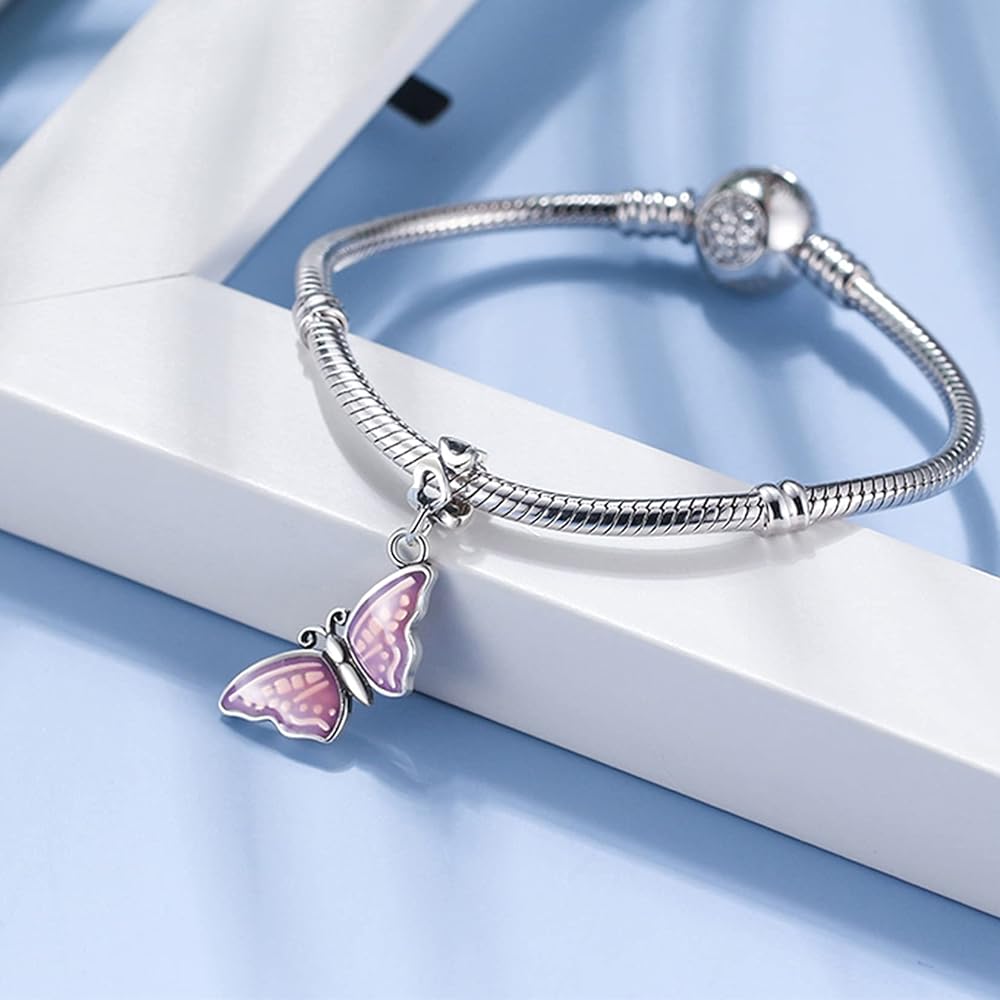 تعليقة متدلية على شكل فراشة بلون بينك تناسب قلادة سوار باندورا للنساء، قلادة خرز على شكل فراشة وحشرات وحيوانات، هدايا لعيد الأم وعيد الميلاد والذكرى السنوية