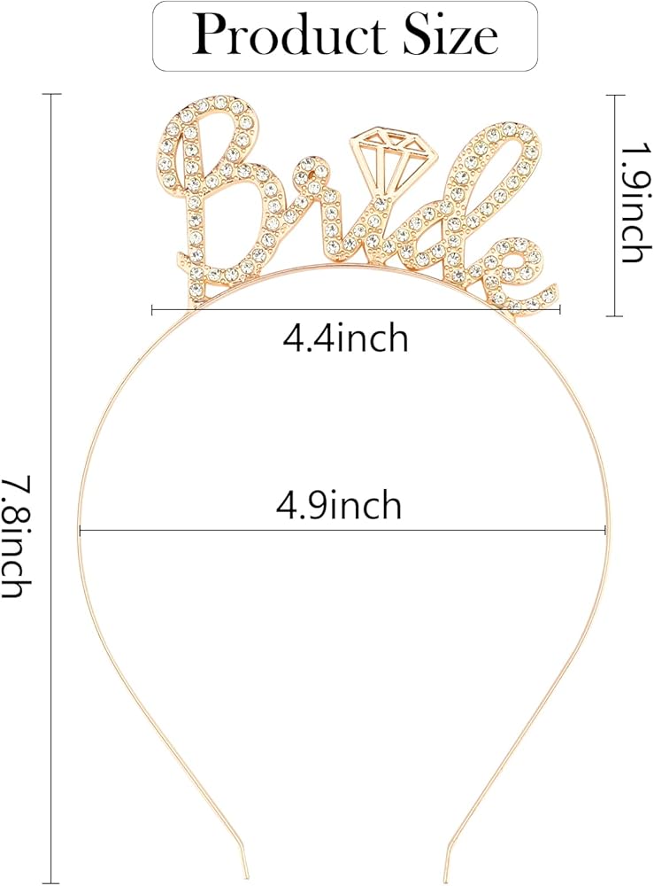 Product Size : The bride headband diameter in 4.9 inches and the word "B" high in 1.9 inches, and it suits almost all adults.