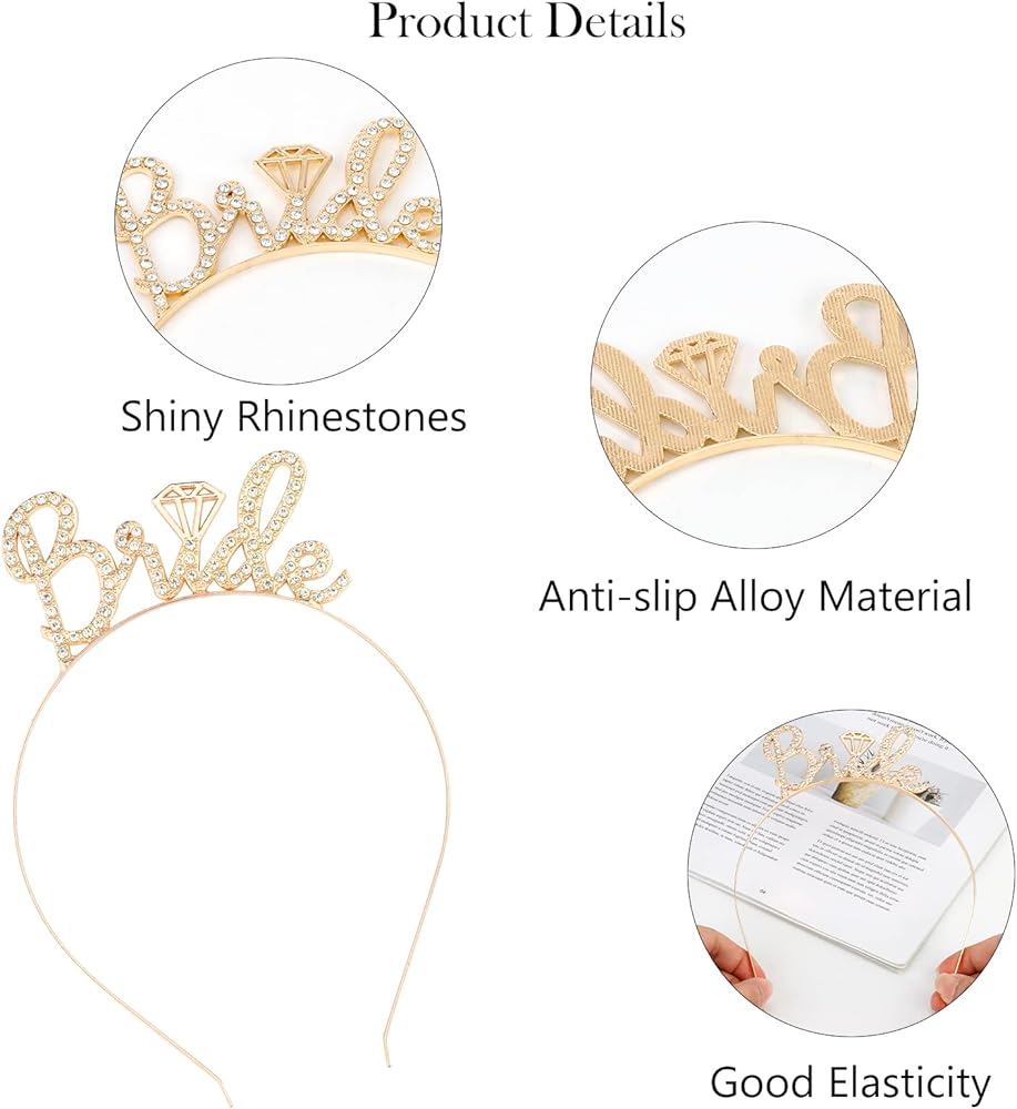 One Size Fit All : The bride headband is adjustable and flexible, can be bent and adjusted to fit your head size, perfect fit for bride, your bridesmaids and girls.