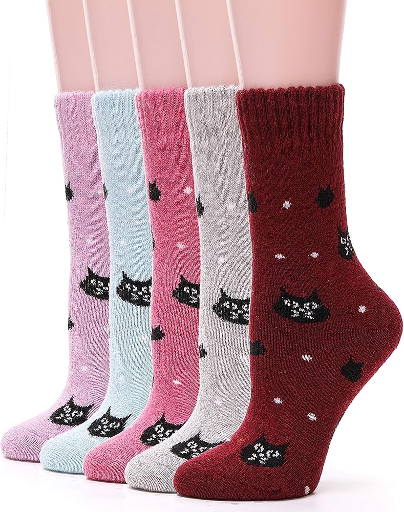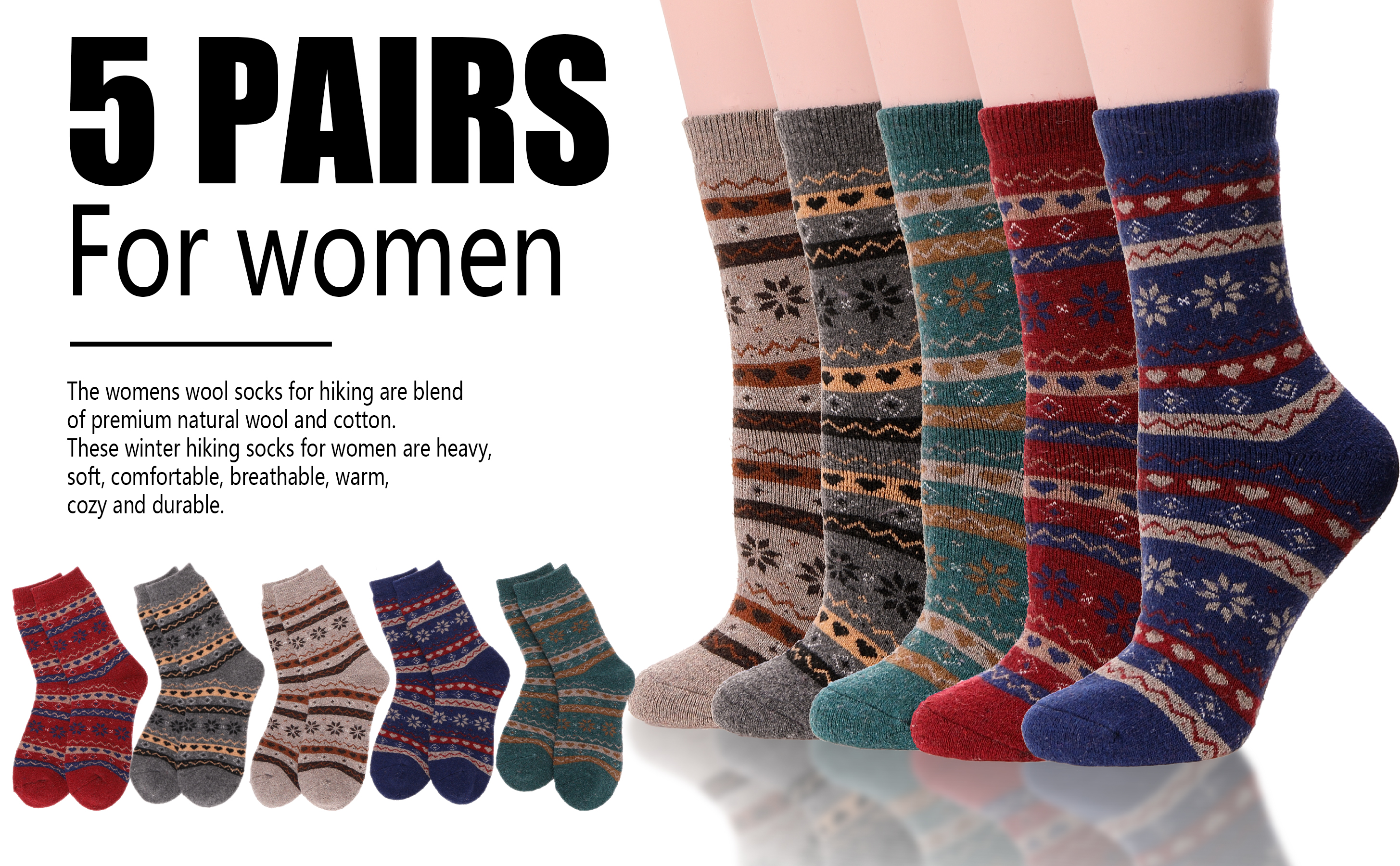 5 أزواج - 5 ألوان: تحتوي كل عبوة على 5 أزواج من الجوارب الصوفية ذات الألوان الجذابة للنساء أو الفتيات المراهقات. يمكن مطابقة النمط والألوان الفريدة لهذه الجوارب مع أي ملابس تختار ارتدائها اليوم!