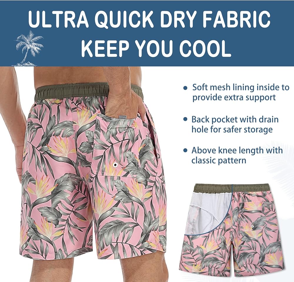 بطانة شبكية من الداخل: شورت ركوب الأمواج للرجال مع سراويل داخلية شبكية مدمجة لتوفير دعم إضافي والحفاظ على انتعاشك في اليوم الحار
