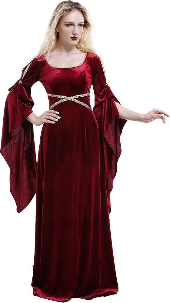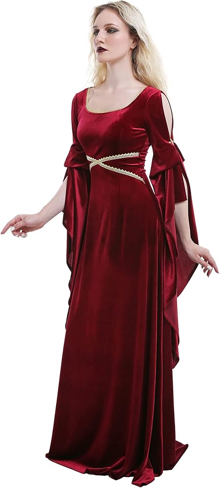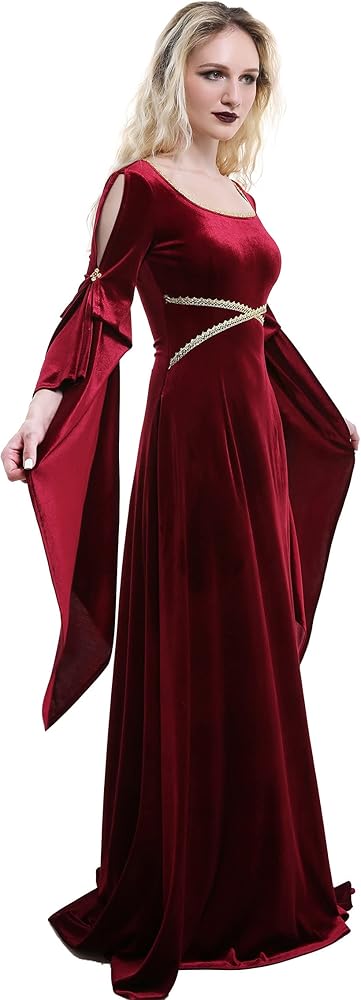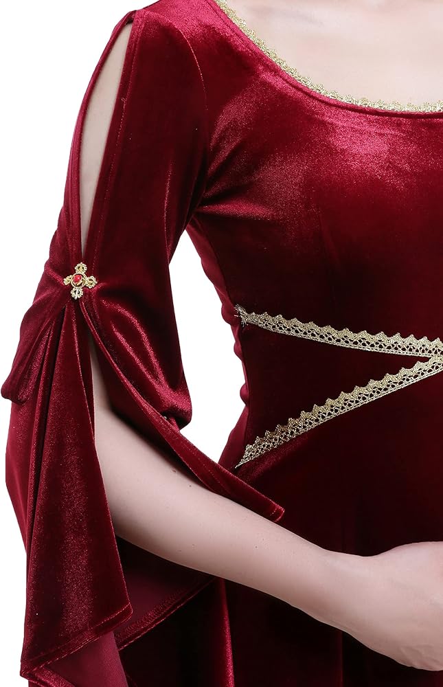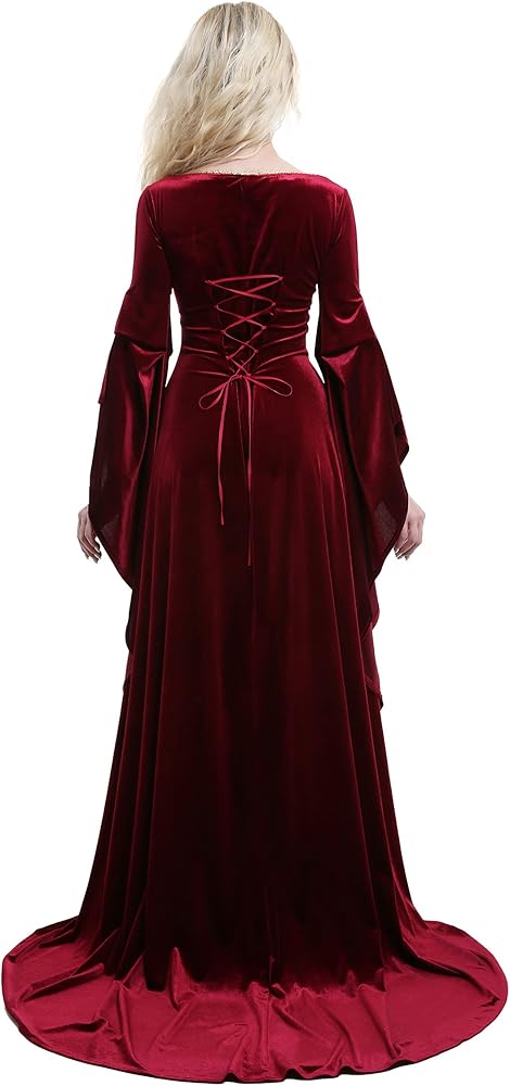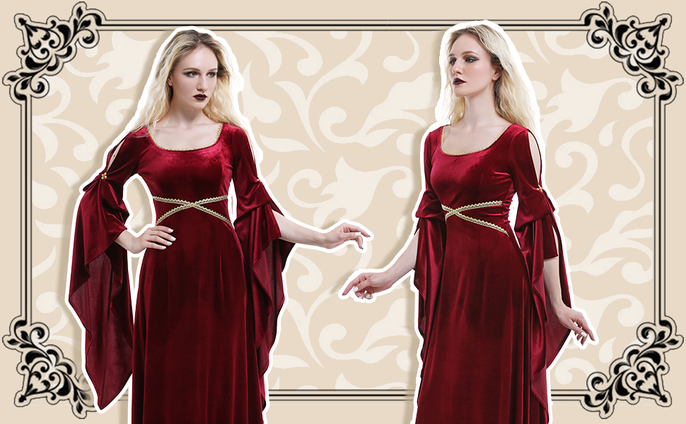 ♥ فستان مخملي من العصور الوسطى: الحاشية الكبيرة والدرزة الطويلة تجعل الفستان أكثر أناقة وأناقة. الدانتيل عند الخصر وخط العنق يزين الملابس فقط، مما يضيف الرقي والأناقة إلى الشعور القديم العام. يوجد حزام في الخلف لضبط جزء الخصر، يمكنك ضبط الضيق وفقًا لمشاعرك لتحقيق حالة مريحة. بشكل عام إنه ينتمي إلى أسلوب العصور الوسطى الأساسي.